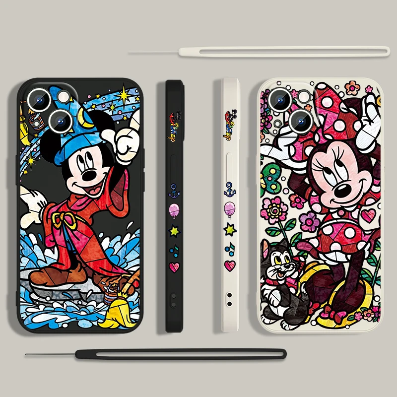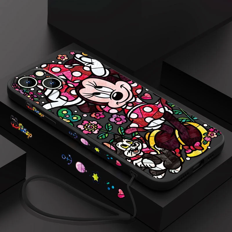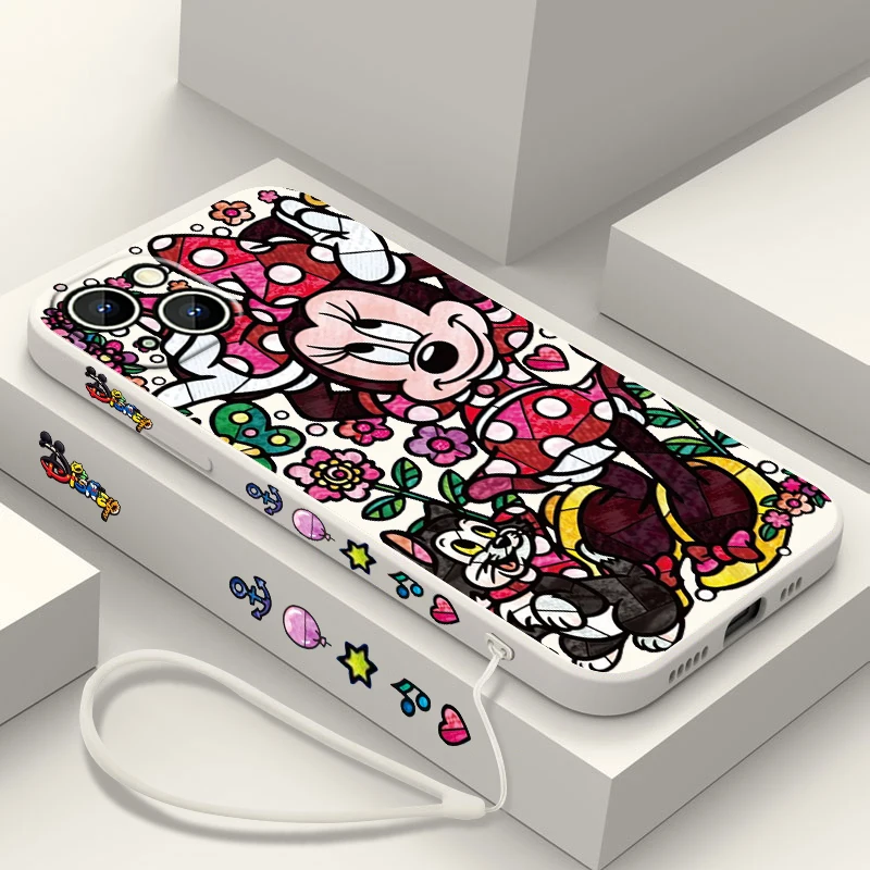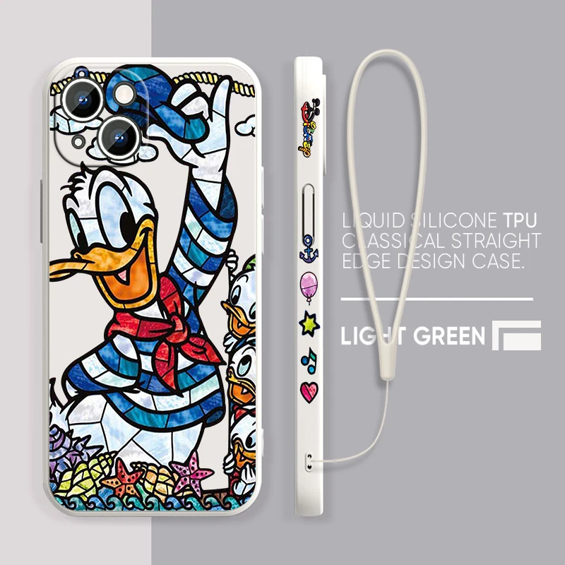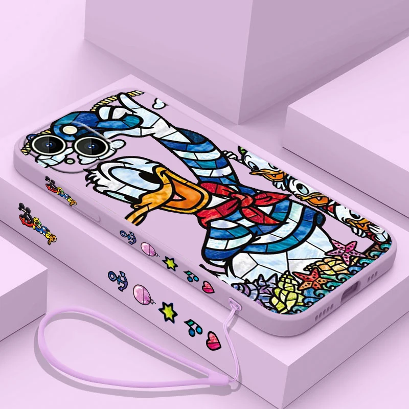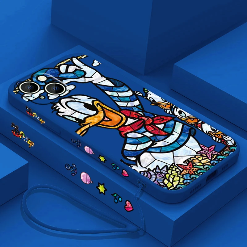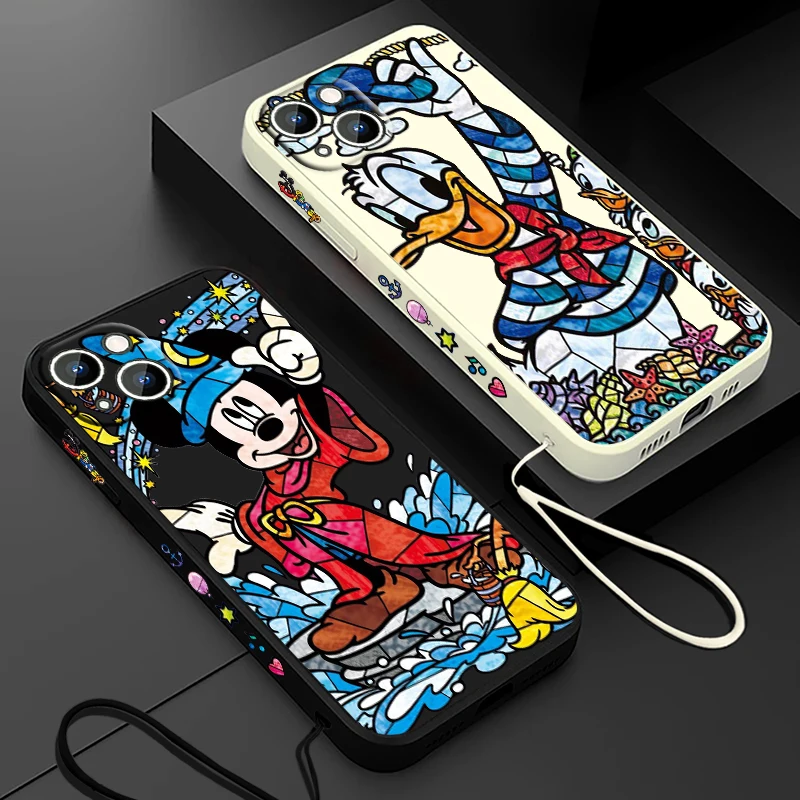 Comprar Funda de teléfono de pato Donald para Apple, funda suave de Minnie y Mickey para iPhone 15, 14, 13, 12, 11 Pro Max Plus, 8, 7, SE, cuerda líquida izquierda