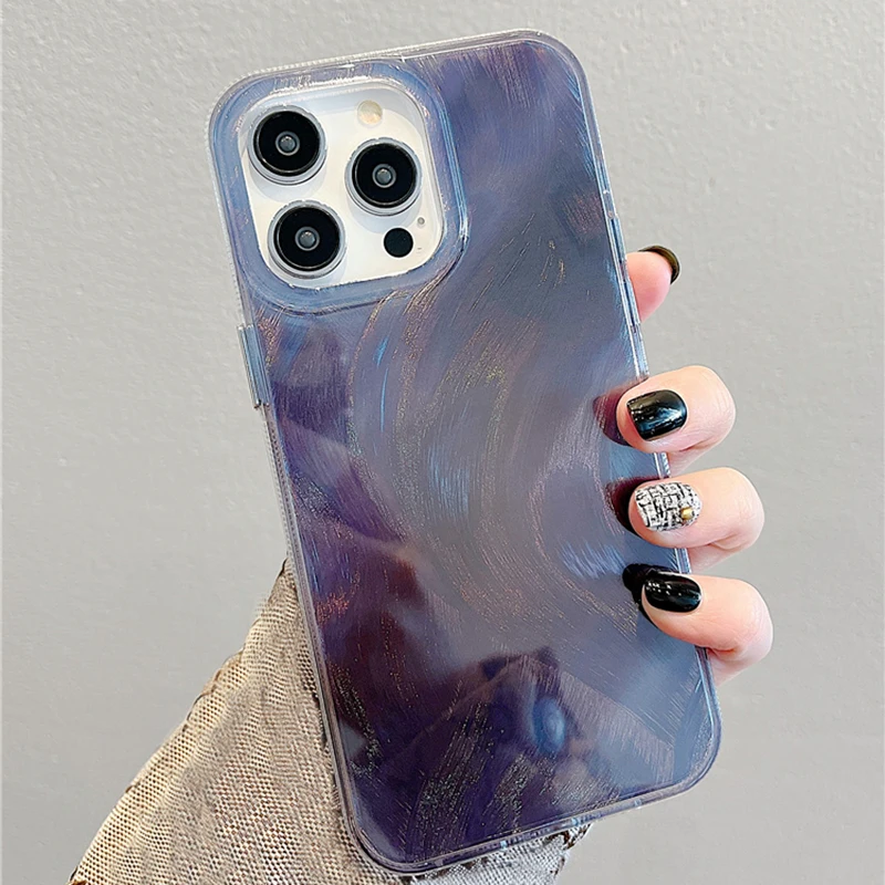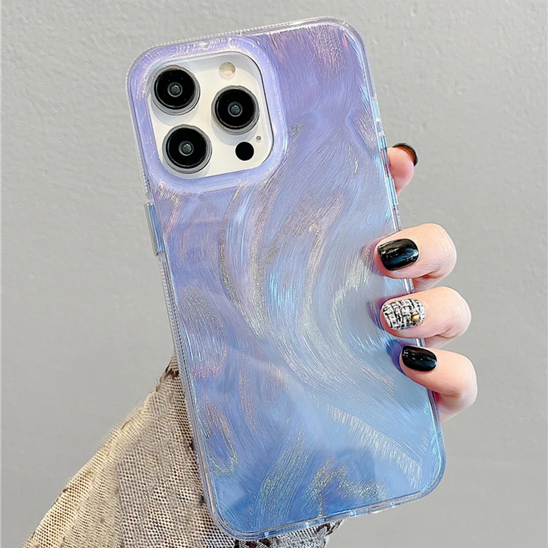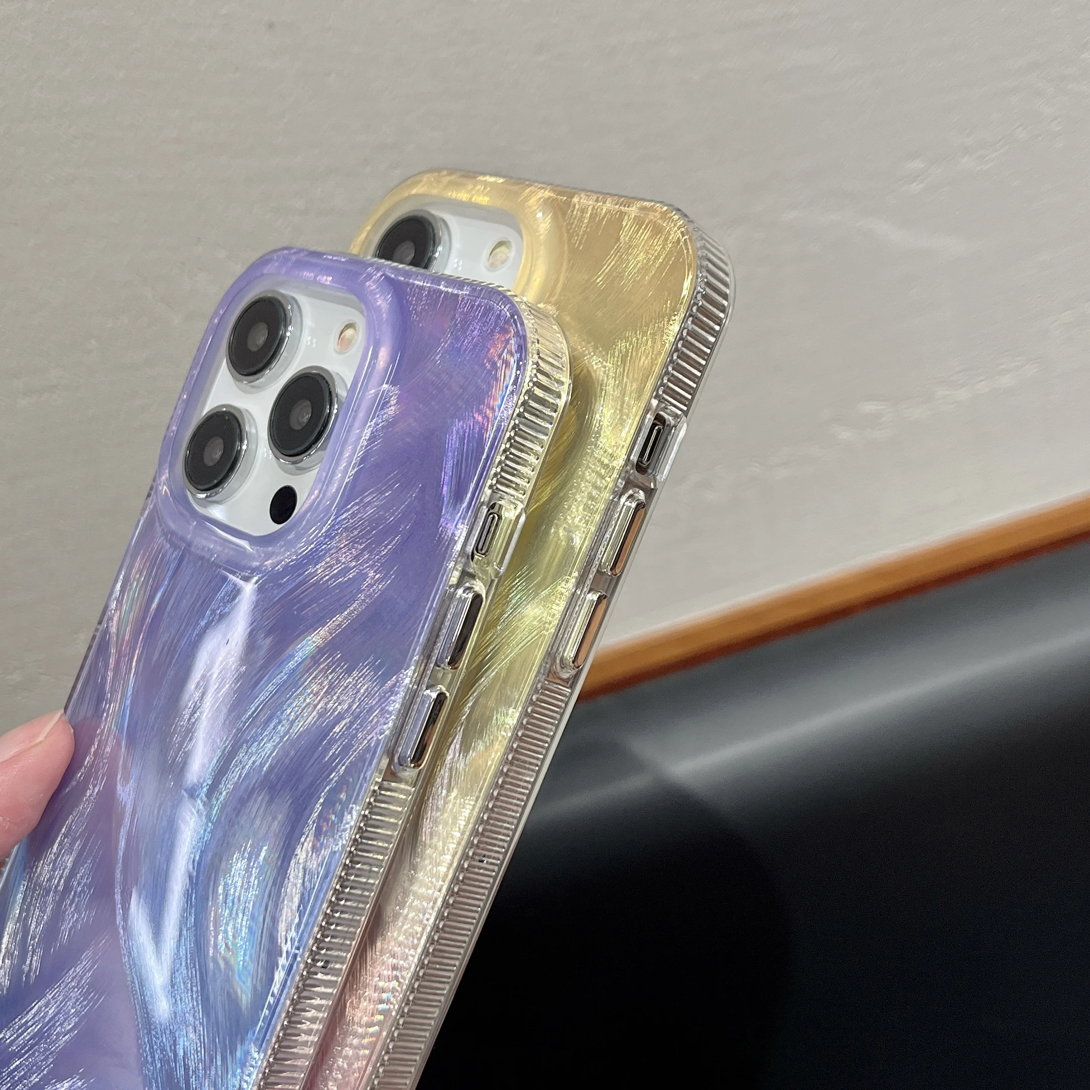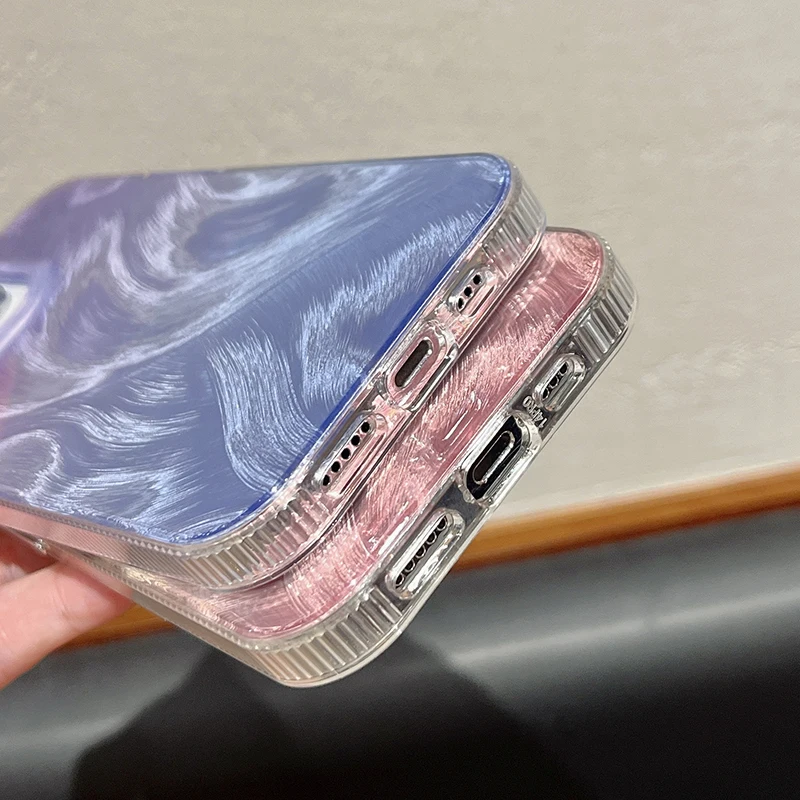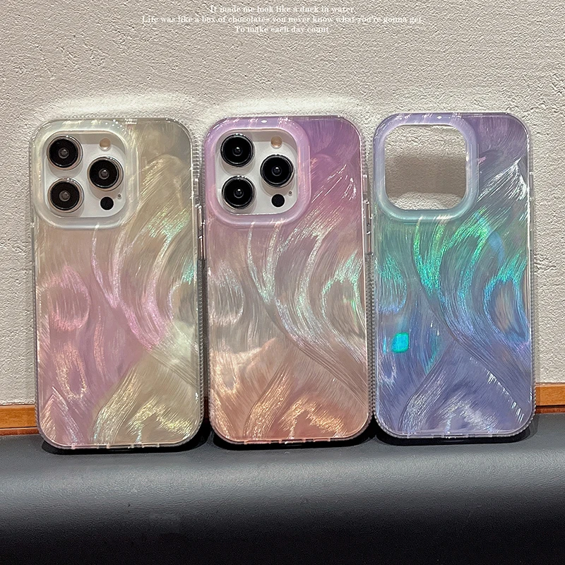 Funda de teléfono de Color degradado con patrón de carcasa láser a la moda para iPhone 15 Pro Max 14 13 11 12 contraportada con botón plateado chapado