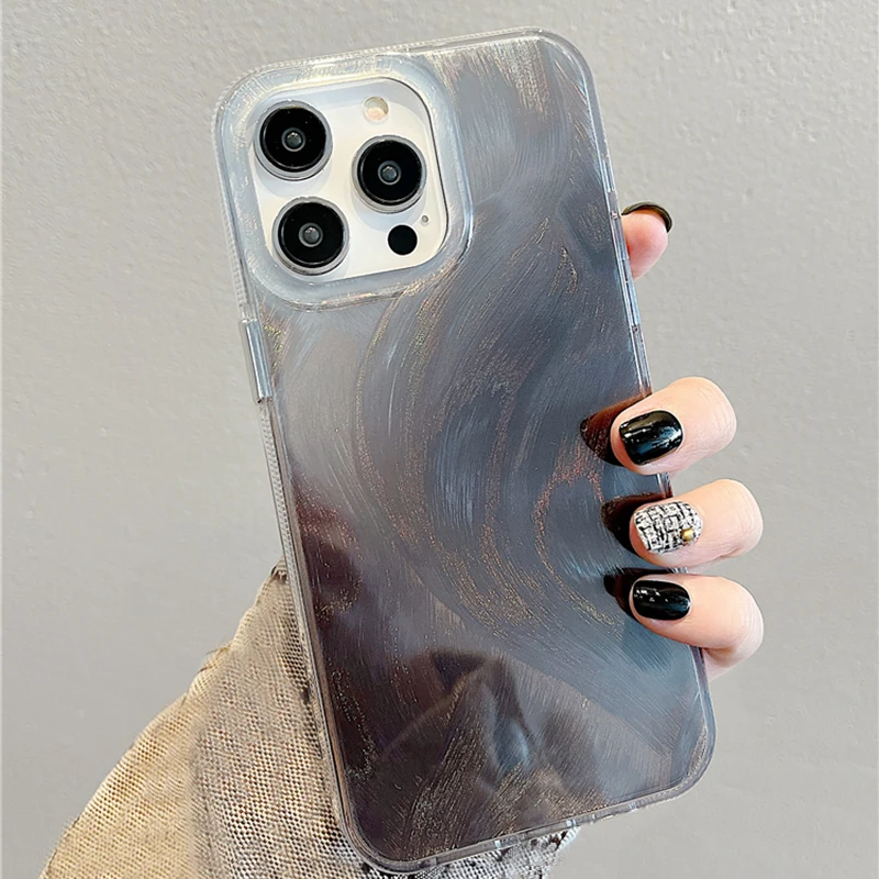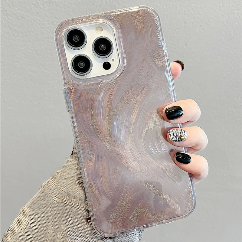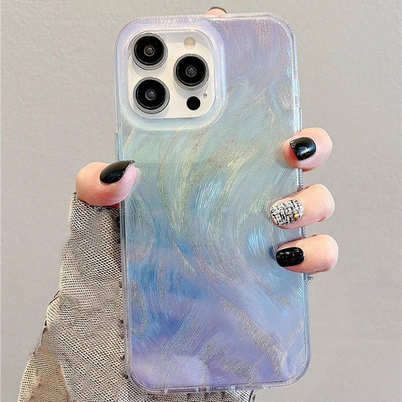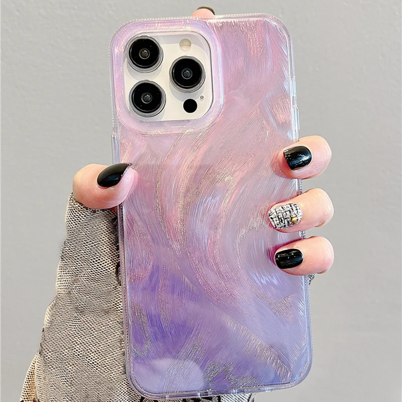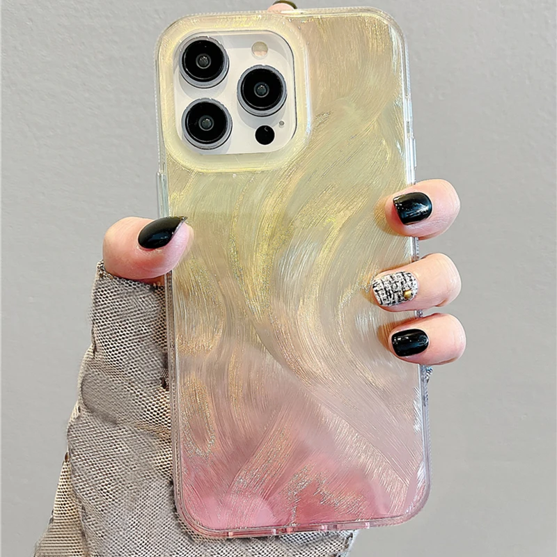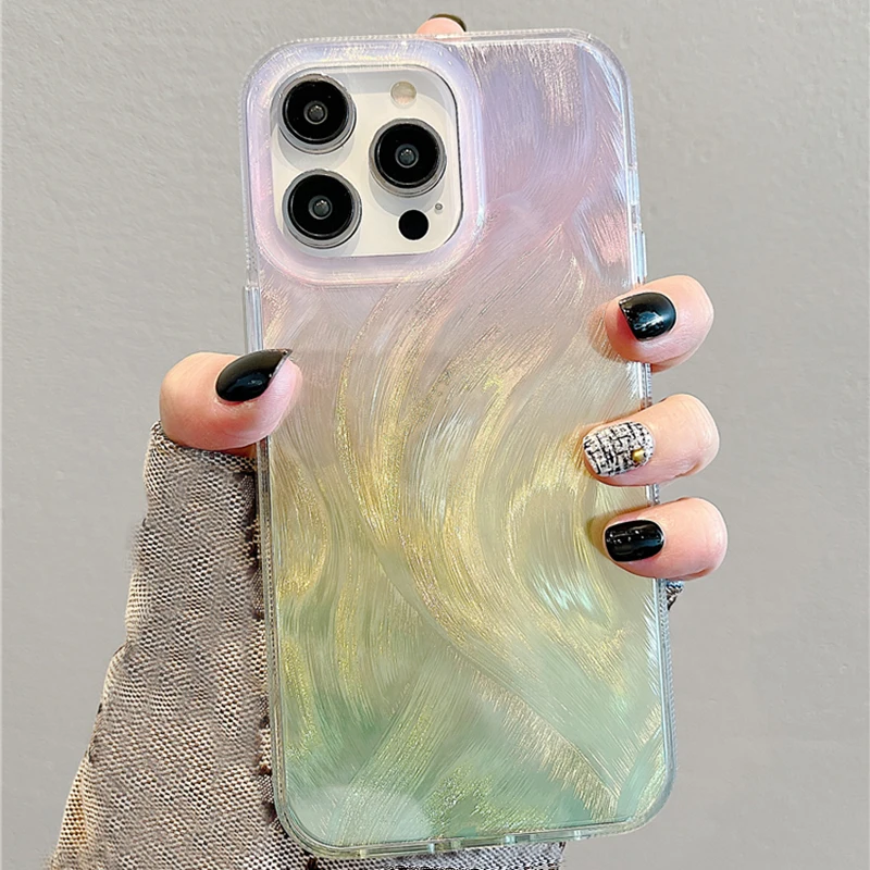 Funda de teléfono de Color degradado con patrón de carcasa láser a la moda para iPhone 15 Pro Max 14 13 11 12 contraportada con botón plateado chapado