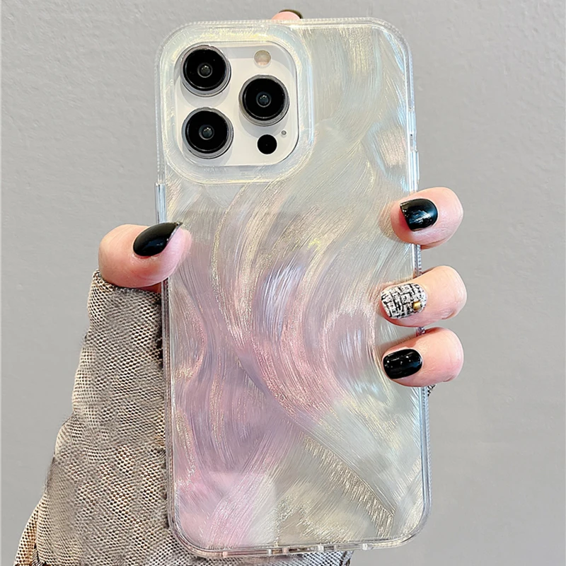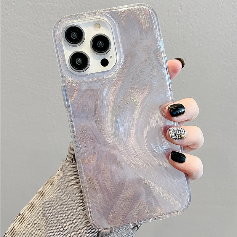 Comprar Funda de teléfono con patrón de concha láser a la moda para iPhone 15 Pro Max 16 14 13 11 12 contraportada con botón plateado chapado
