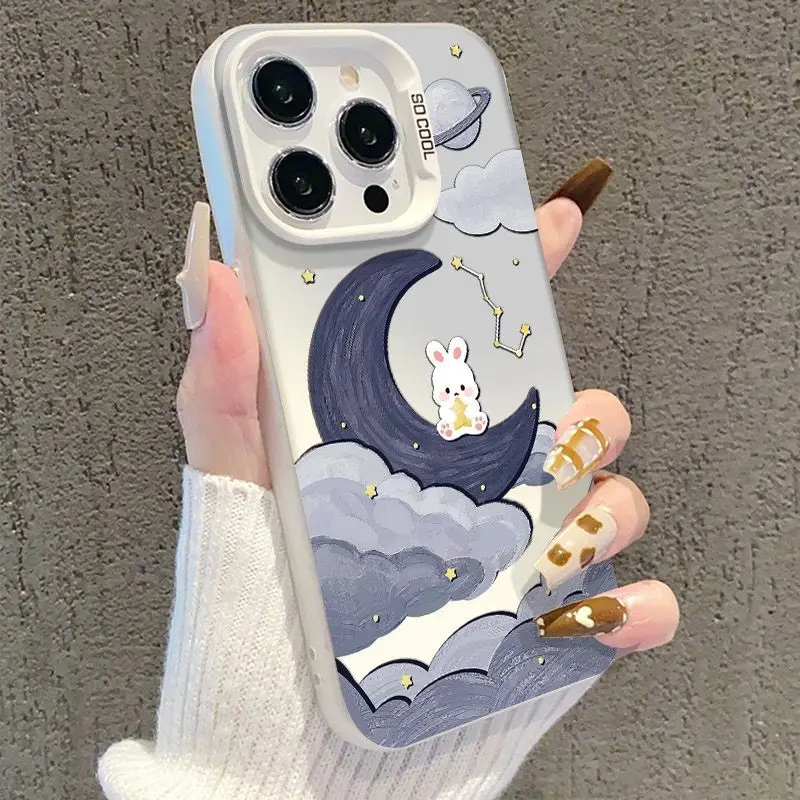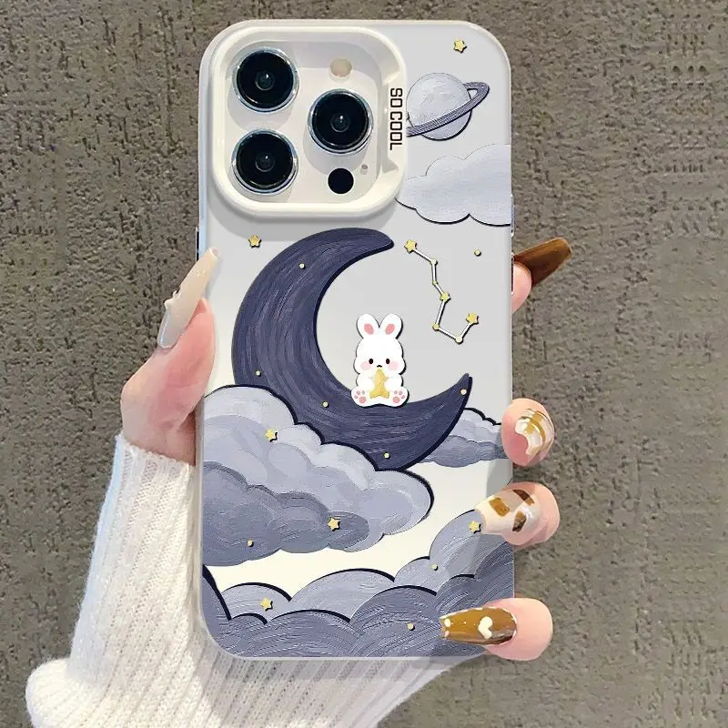 Funda de teléfono con patrón de conejo blanco estrellado para Samsung Galaxy S23 S24 S25 Ultra S22 S21 S20 Plus FE A15 A35 A55, cubierta dura mate