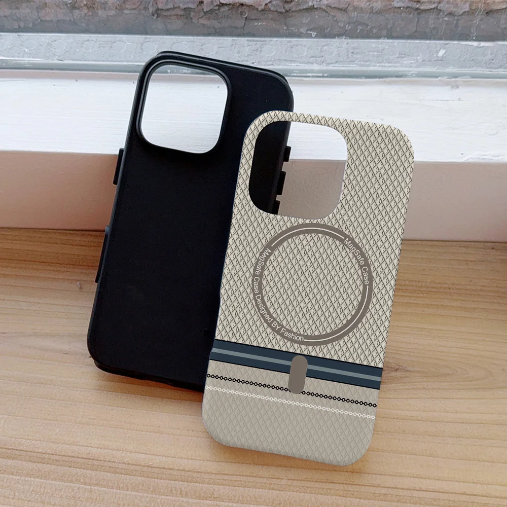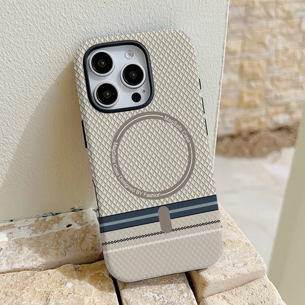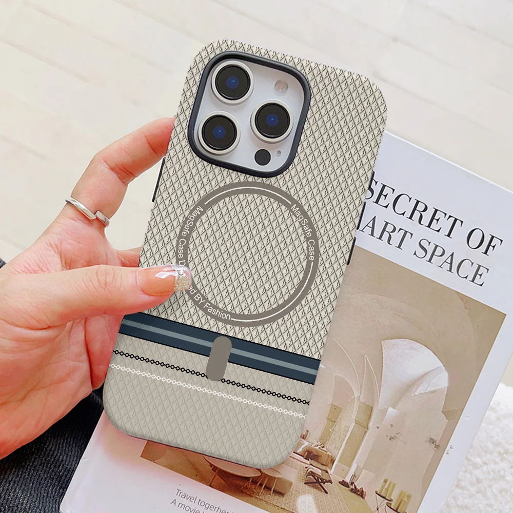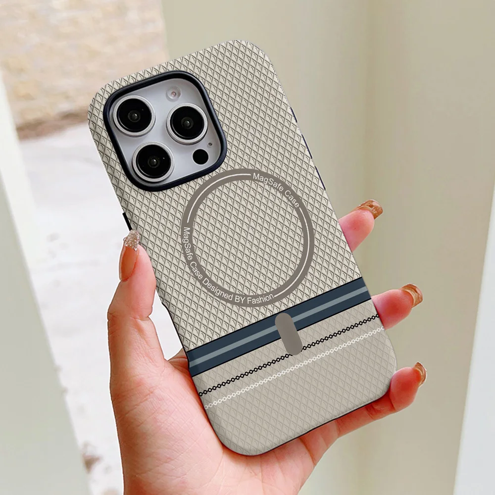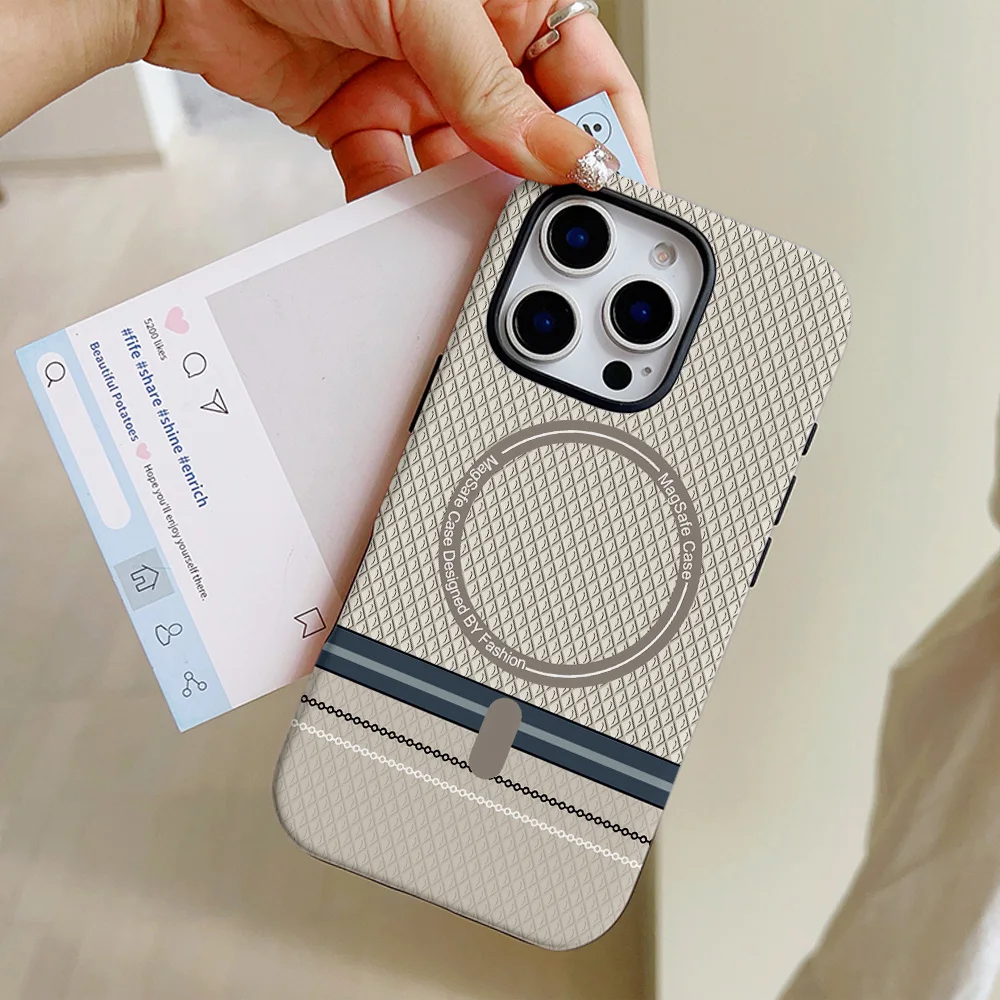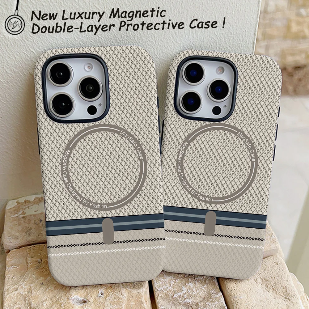 Comprar Funda de teléfono con patrón de cuadros a rayas para iPhone 16, 15, 14, 13, 12, 11 Pro Max Plus, funda trasera magnética de lujo de doble capa