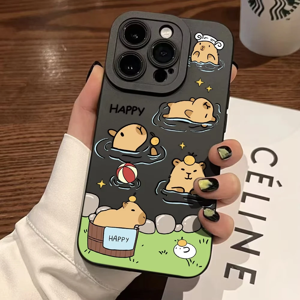 Funda de teléfono con patrón de dibujos animados de capibaras para iPhone 17 16 15 14 13 12 11 Pro Max 17Air 16E 12mini XS XR, funda suave a prueba de golpes
