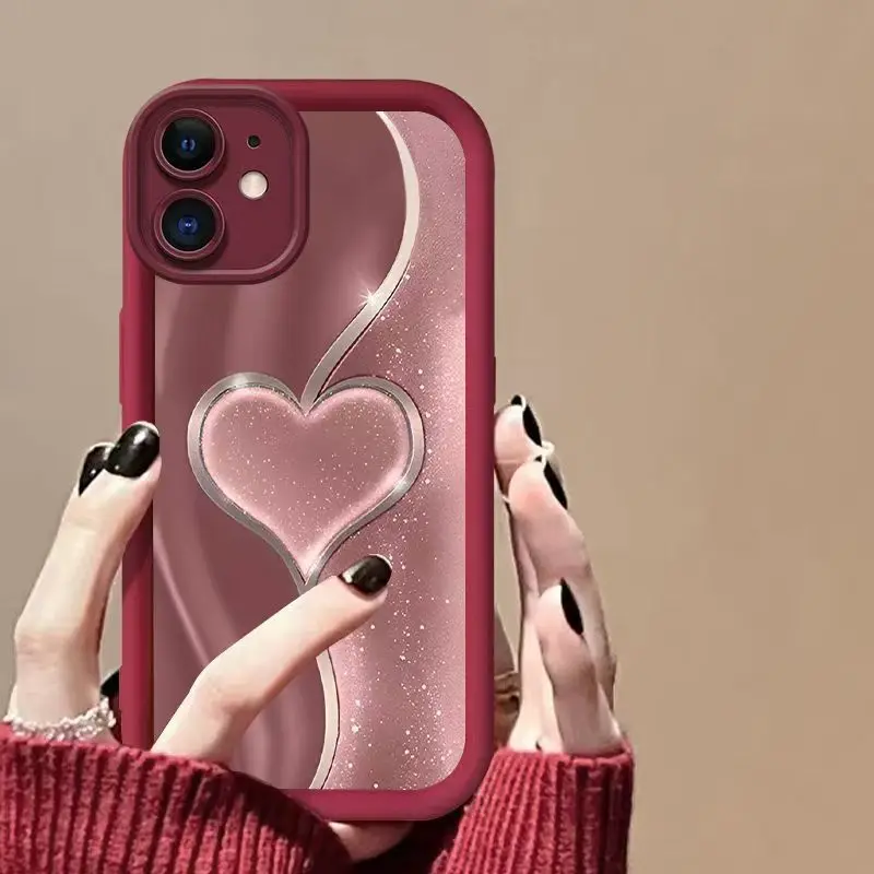 Funda de teléfono con patrón dorado en forma de corazón para iPhone 17 16 15 14 11 12 13 Pro Max Plus X XR XS Max 17 Air, funda trasera suave de silicona