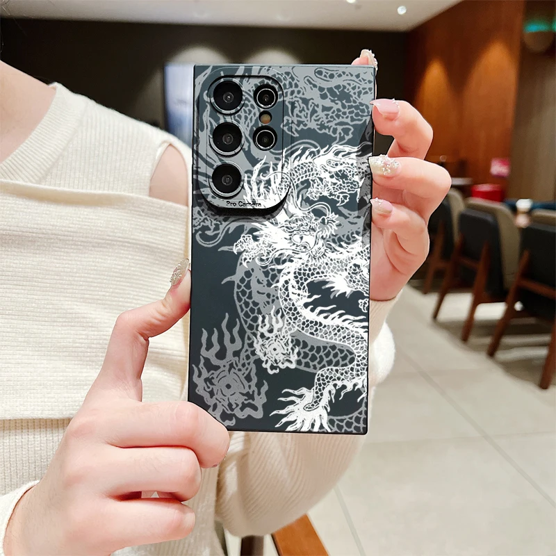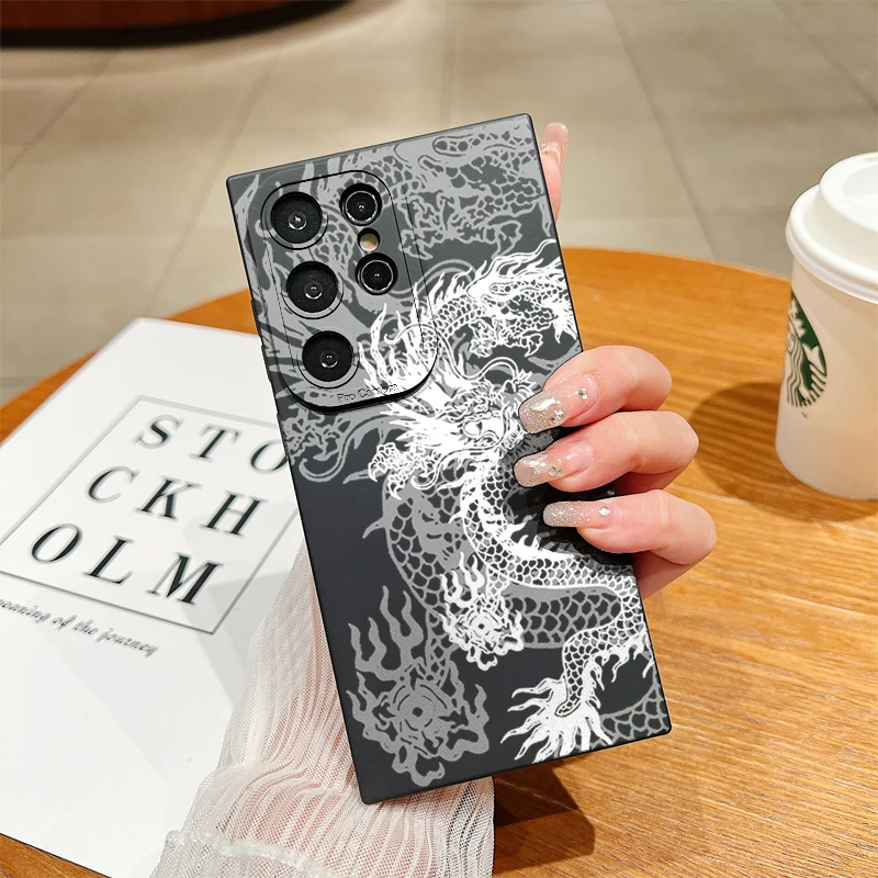 Funda de teléfono con patrón de dragón blanco para Samsung Galaxy S24 S23 Ultra S22 Plus S21 FE A15 A35 A55 A14 A34 A54 A13 A33 A53, funda suave