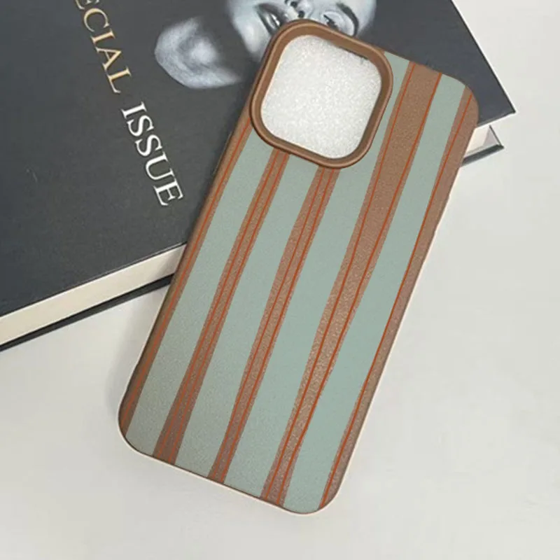 Comprar Funda de teléfono con patrón de lichi y línea roja a rayas azules para iPhone 17 16 Pro Max, fundas para iPhone 15 14 13 12 11 XS XR 7 8 Plus 16E 17