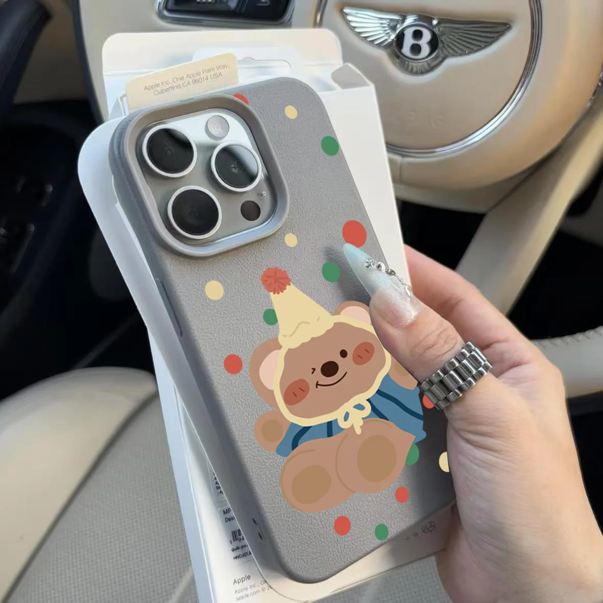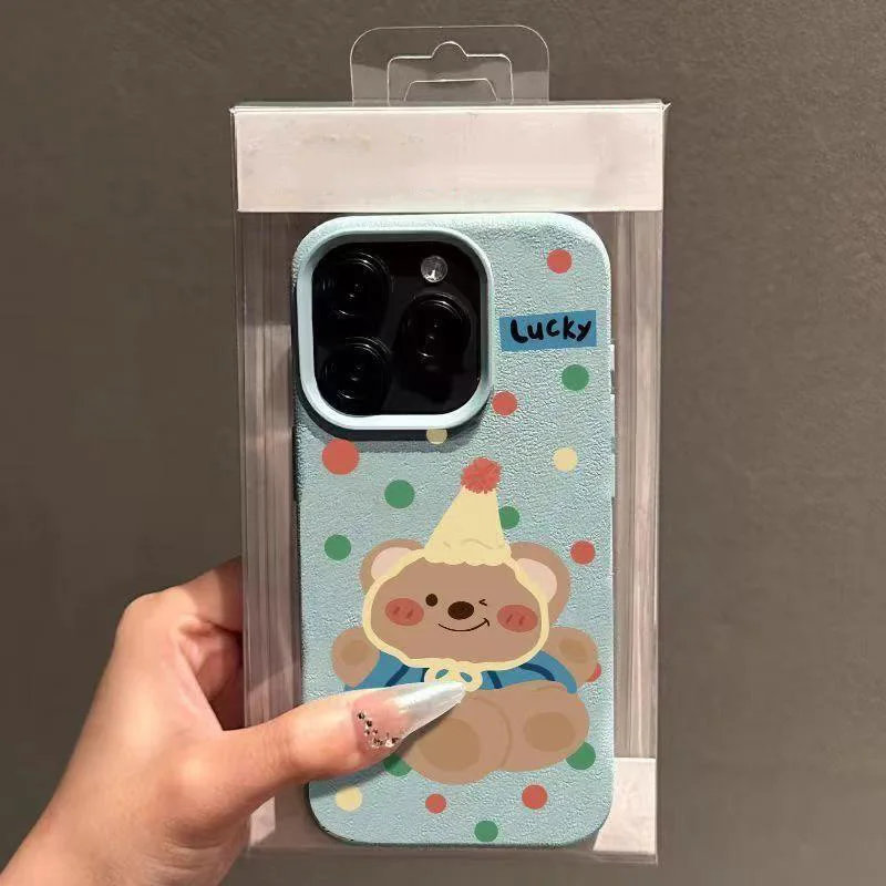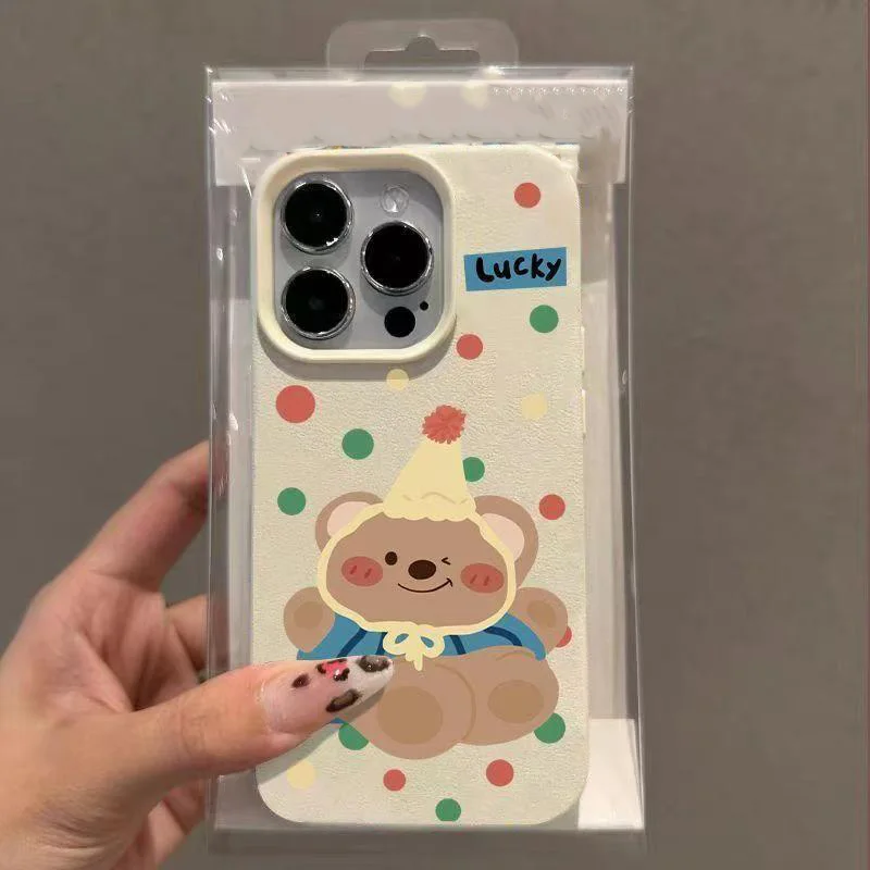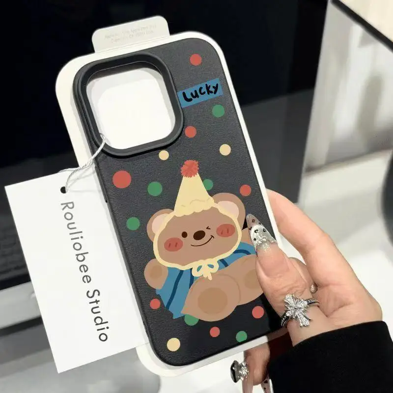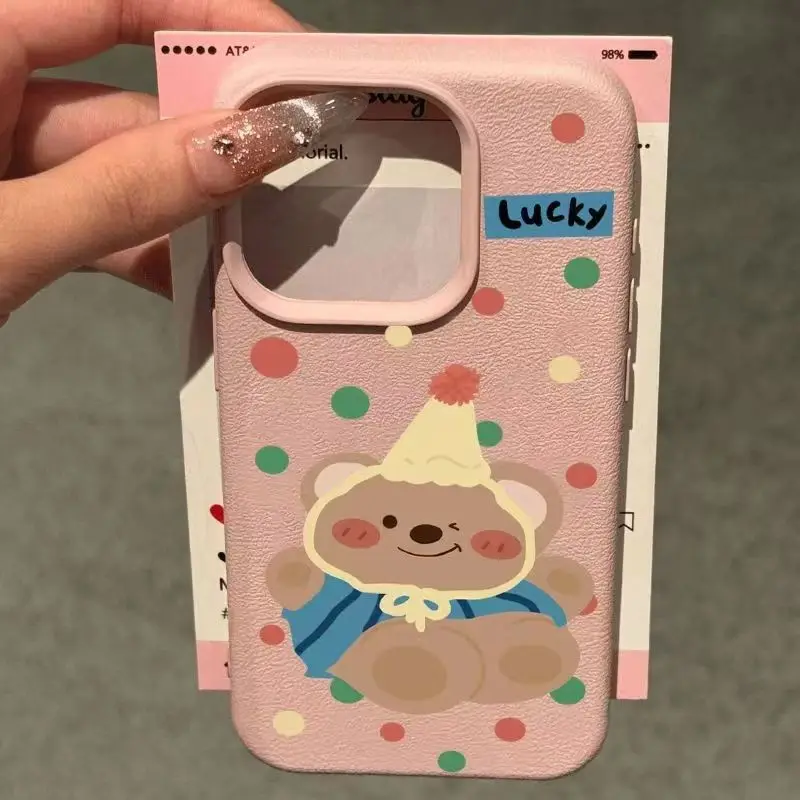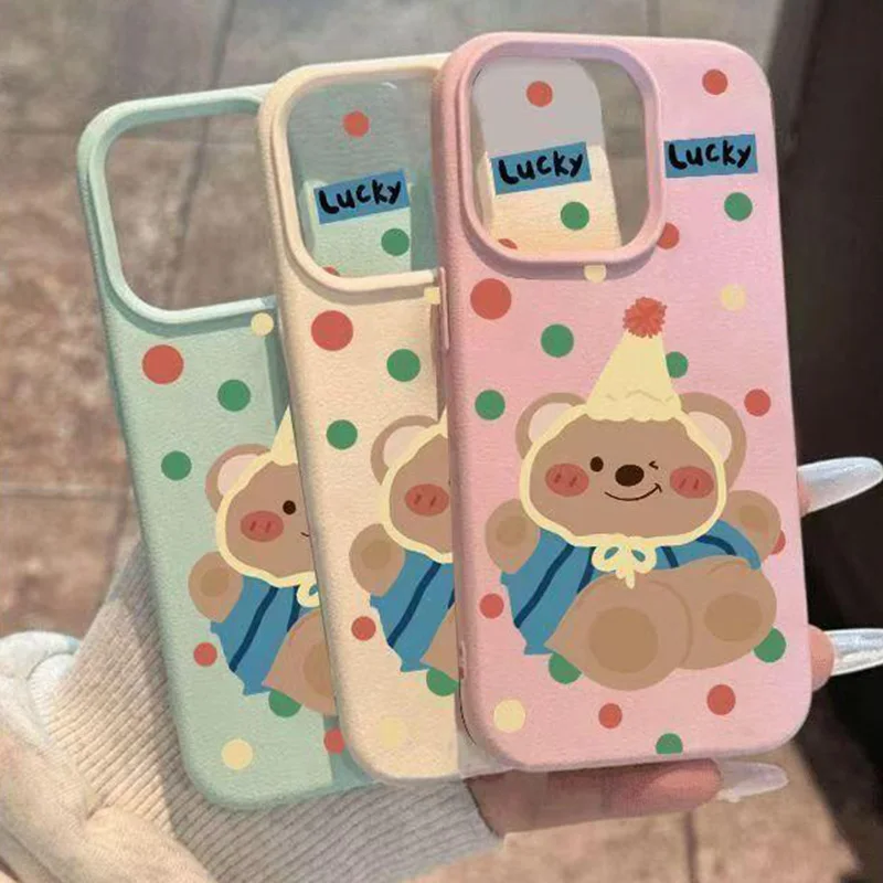 Comprar Funda de teléfono con patrón de lichi y oso de punto redondo colorido de dibujos animados INS para iPhone 11 12 13 14 15 16 Pro Max XR XS Max 16 15 14 Plus