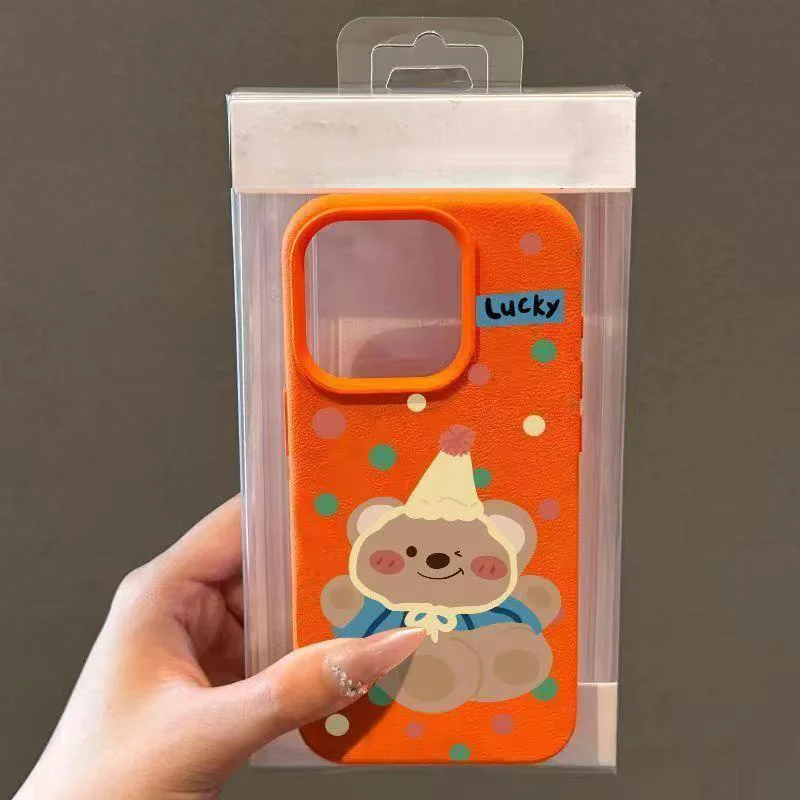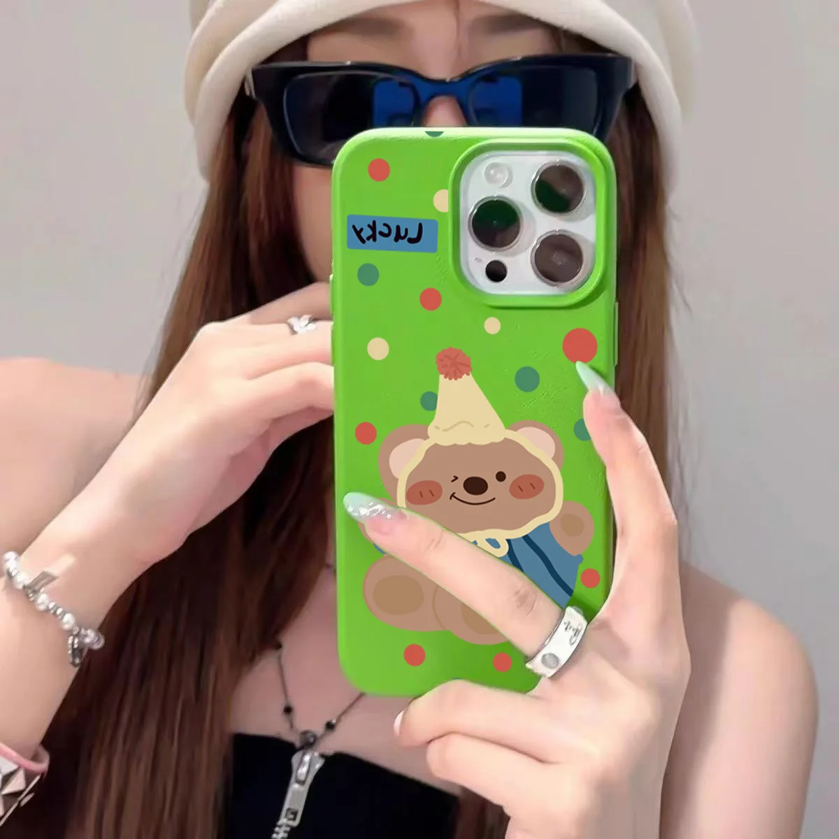 Funda de teléfono con patrón de lichi y oso de punto redondo colorido de dibujos animados INS para iPhone 11 12 13 14 15 16 Pro Max XR XS Max 16 15 14 Plus