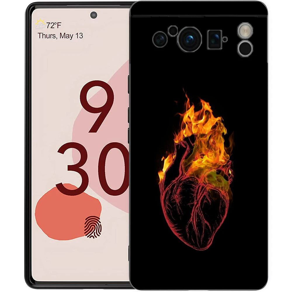Funda de teléfono con patrón de llama para Google Pixel 10 9 8 7 6 Pro XL 9A 8A 6A 7A 5G, funda negra de TPU suave a prueba de golpes