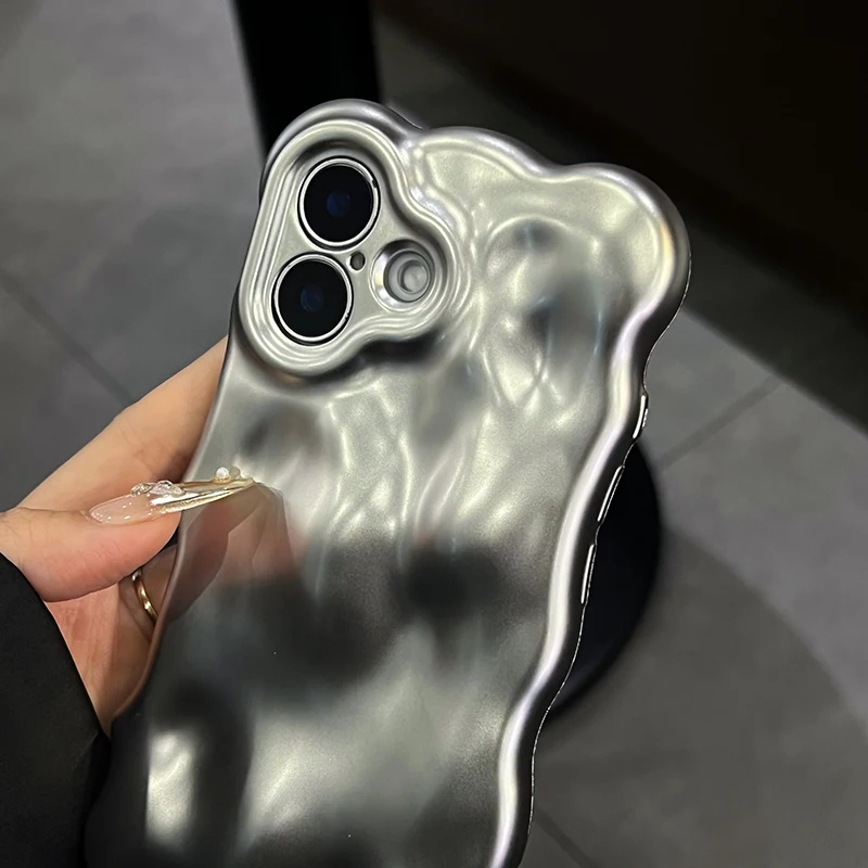 Funda de teléfono con patrón de meteorito plateado mate a la moda para iPhone 11 12 13 14 15 16 Pro Max 16 Plus, funda trasera de silicona a prueba de golpes