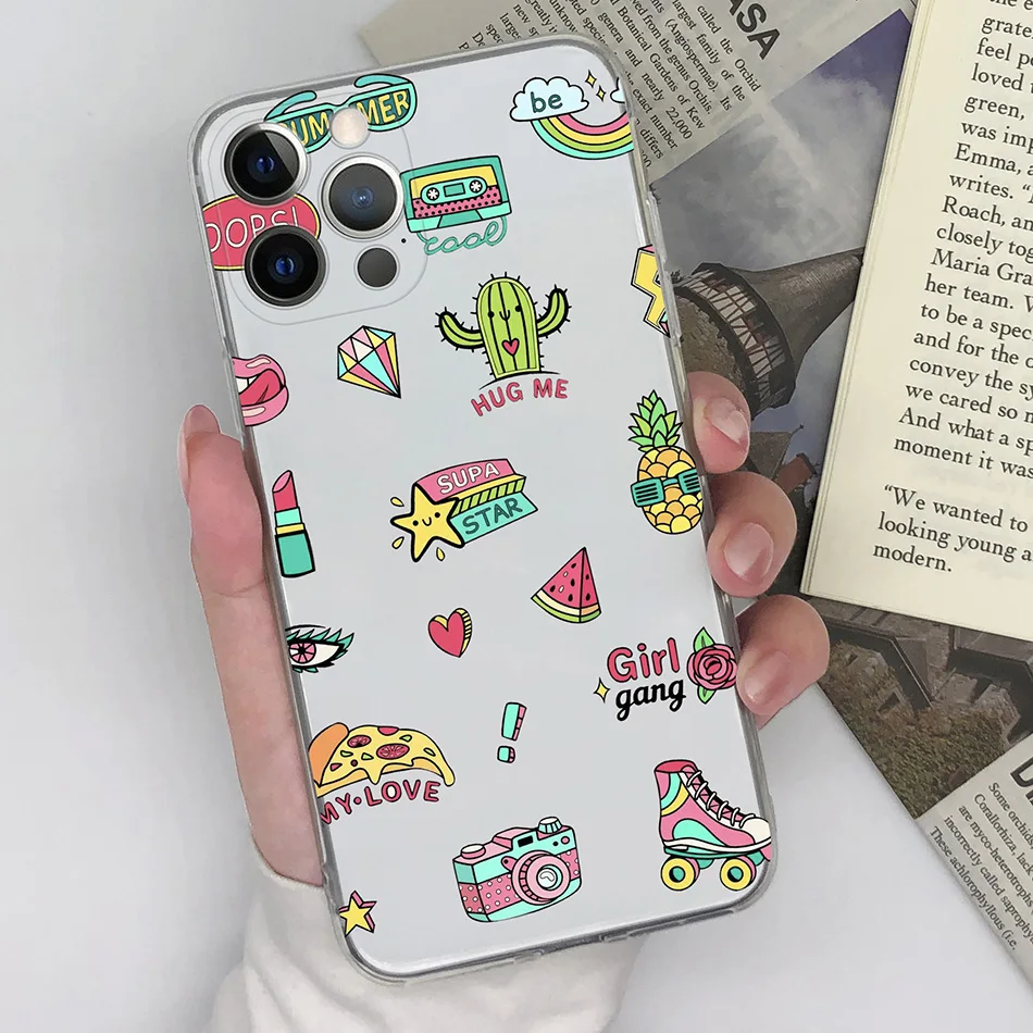 Funda de teléfono con patrón de moda de lujo para iPhone 11 Pro Max 12 Pro Max Mini caricatura Linda Funda de silicona suave Funda transparente