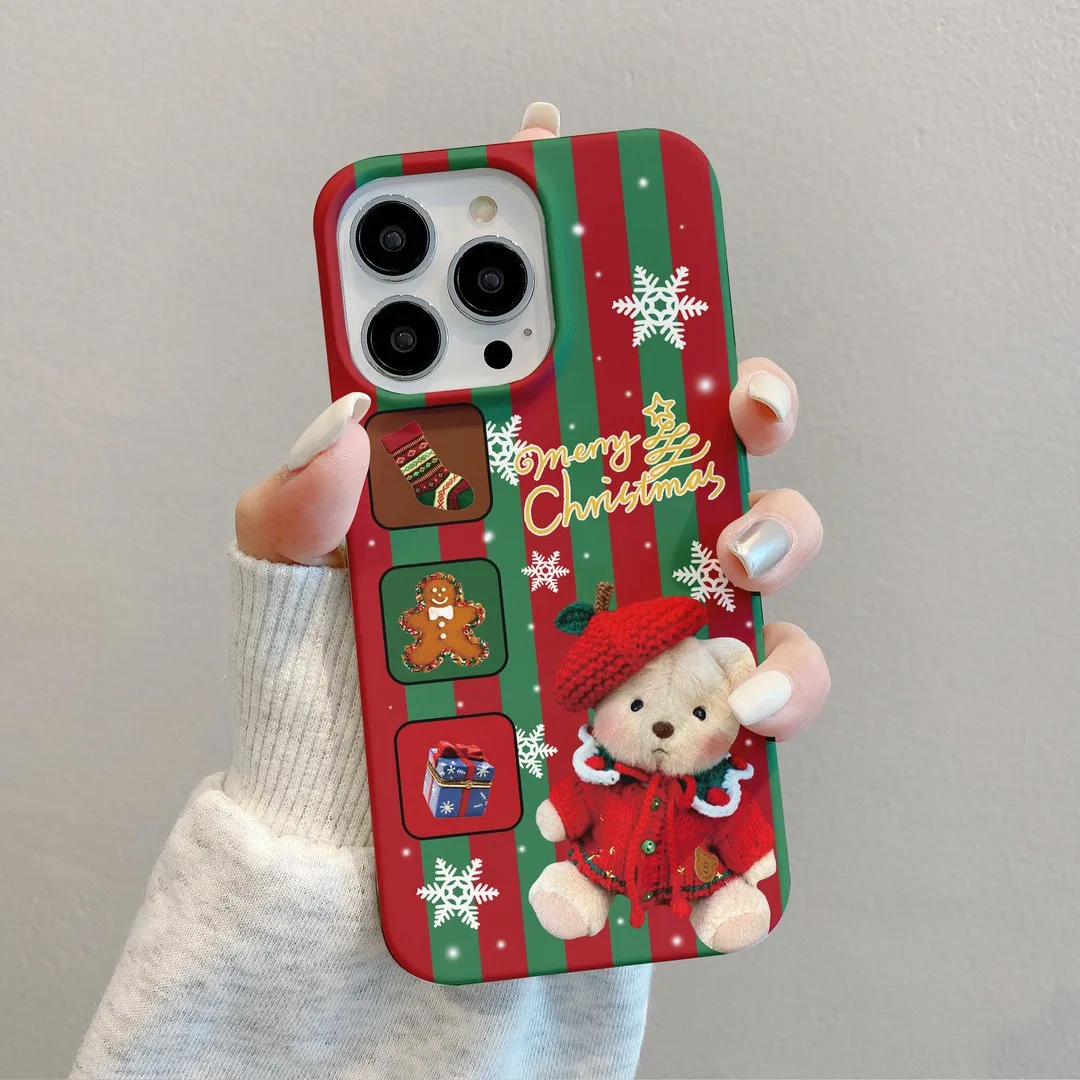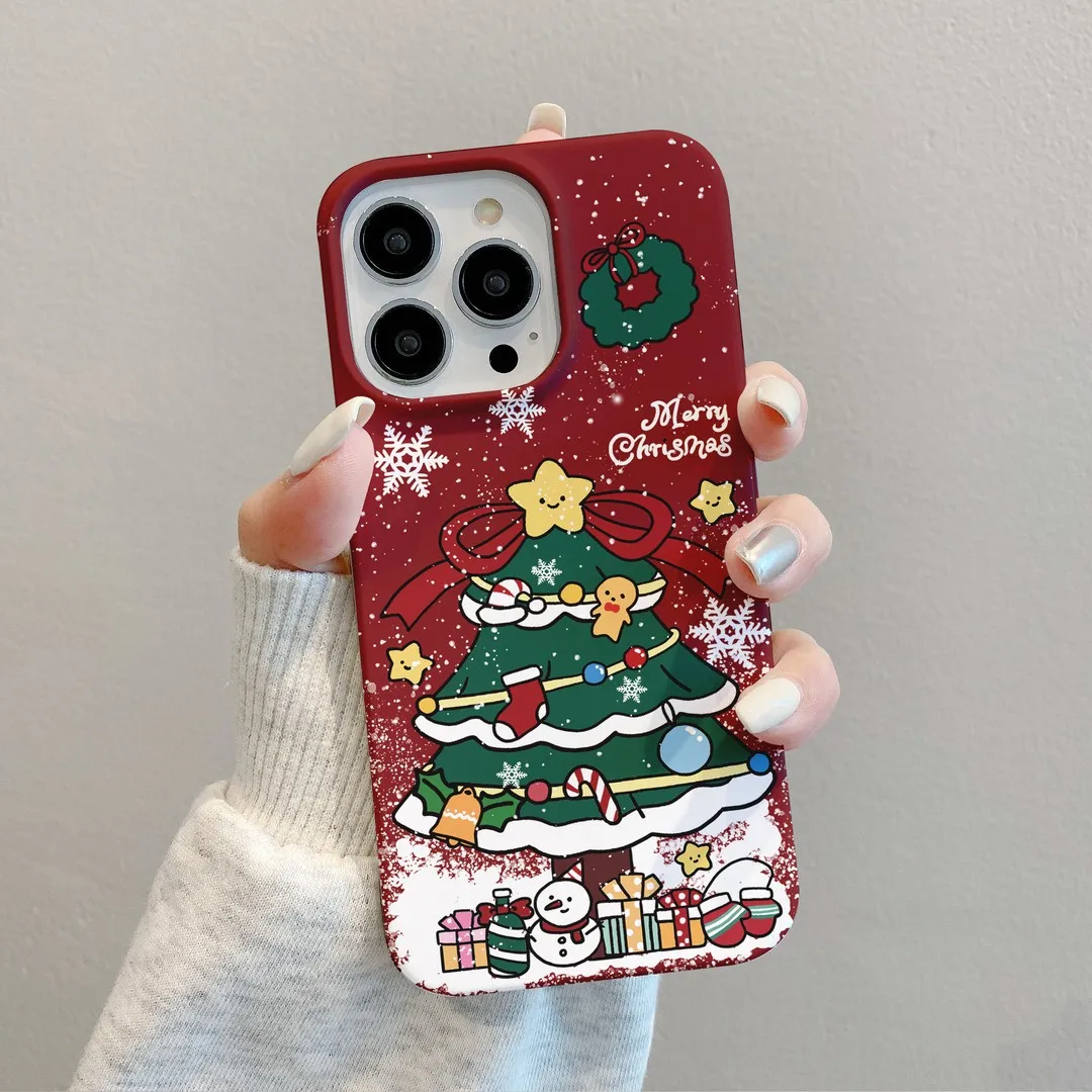 Comprar Funda de teléfono con patrón navideño para iPhone 16 15 14 13 12 11 Pro Max XS XR XSMax 6 7 8 Plus, cubierta dura HD brillante para PC