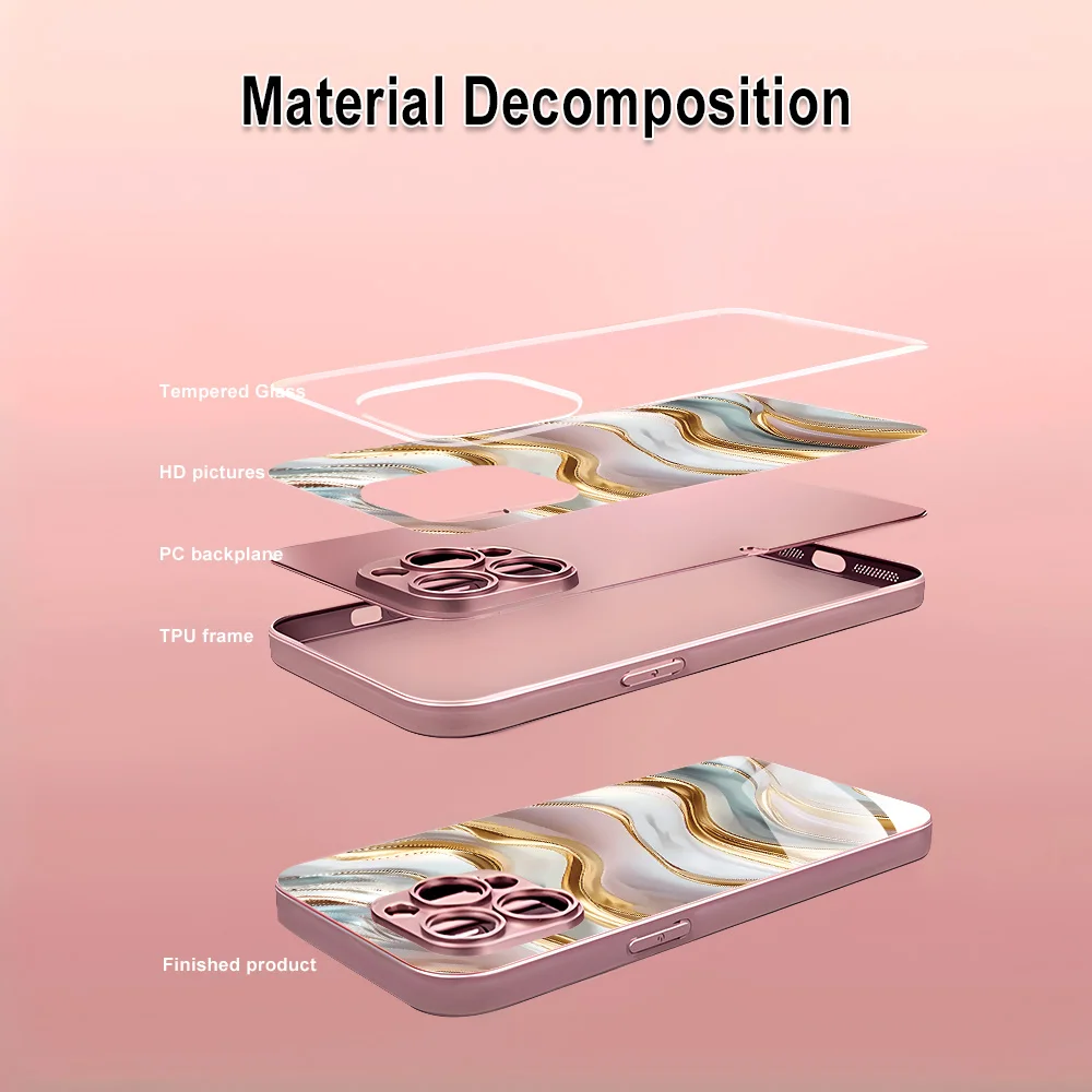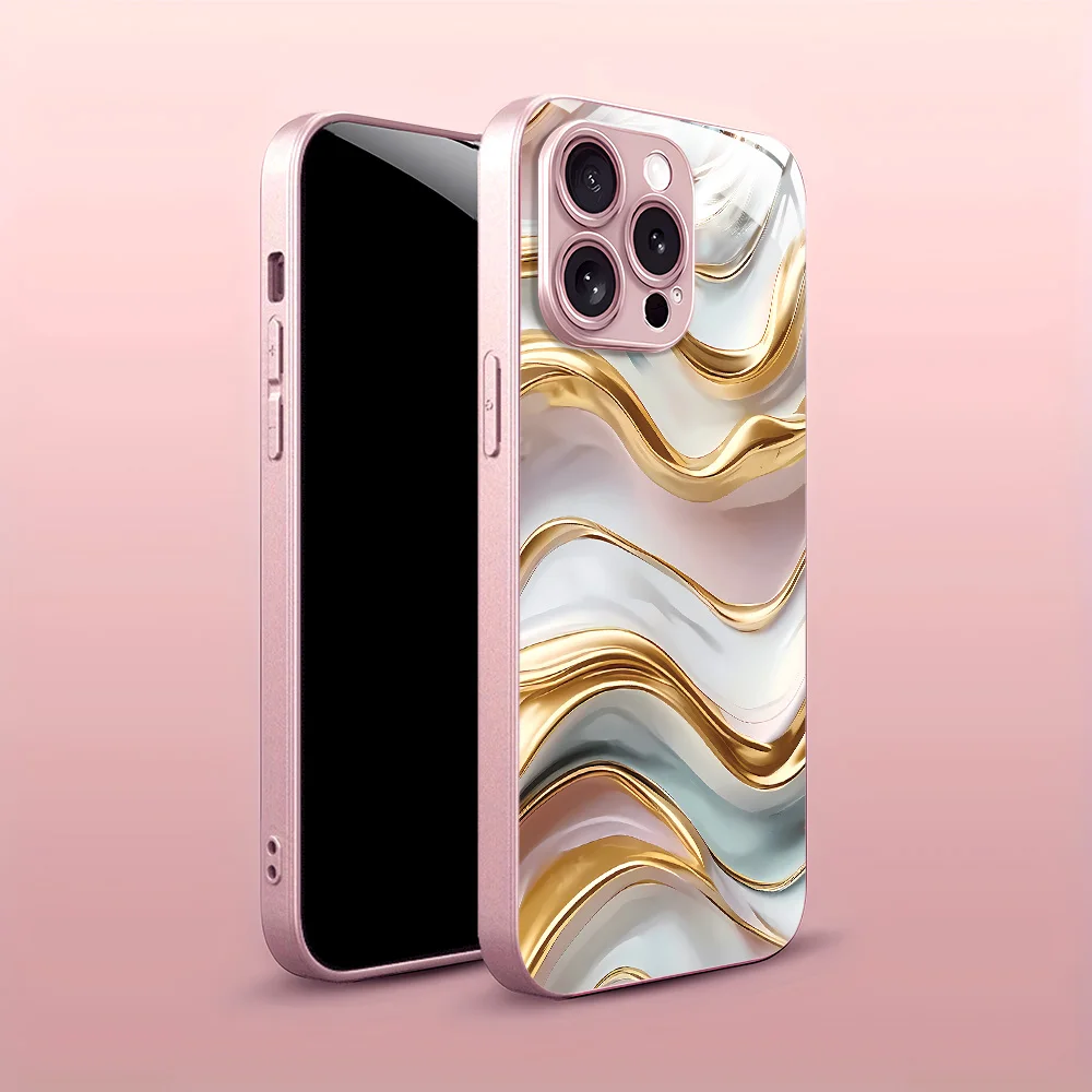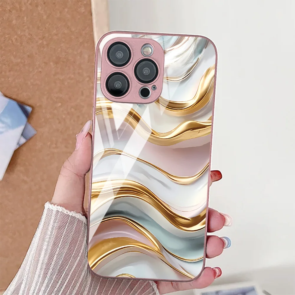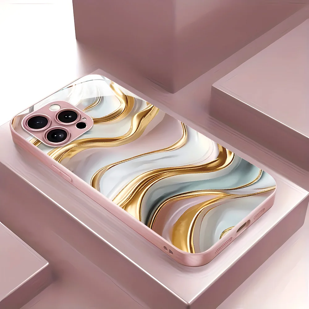 Funda de teléfono con patrón de ondas de agua para iPhone 14 15 11 13 12 17 Pro Max 17 Air 16E 7 8 Plus XR SE cubierta de parachoques de vidrio templado