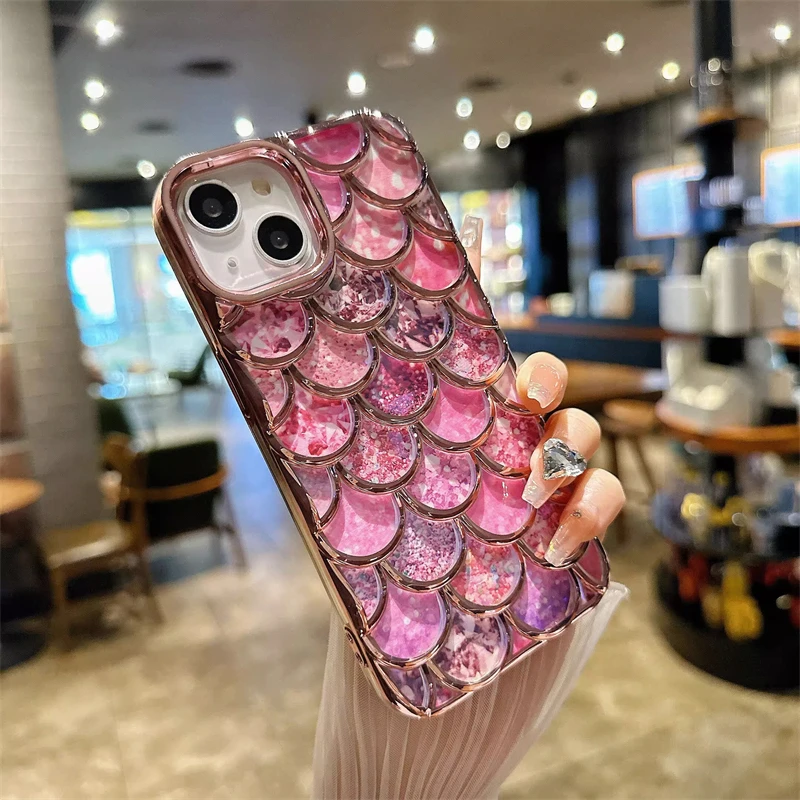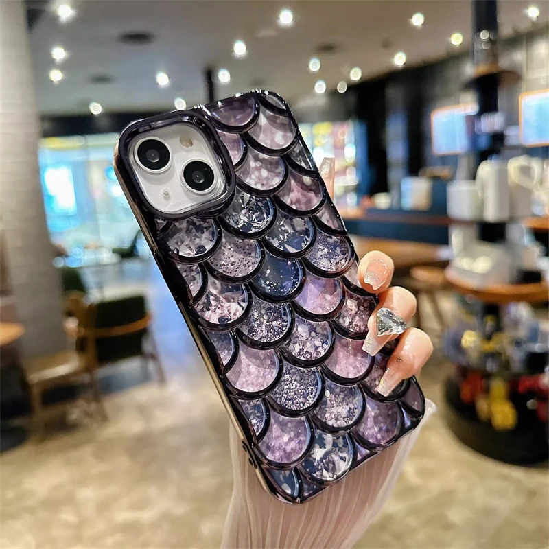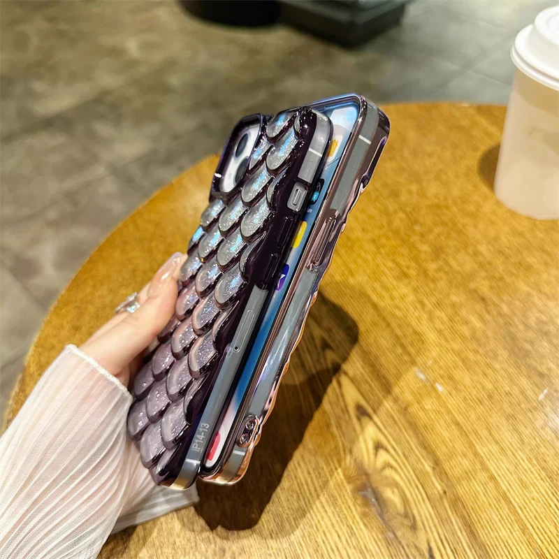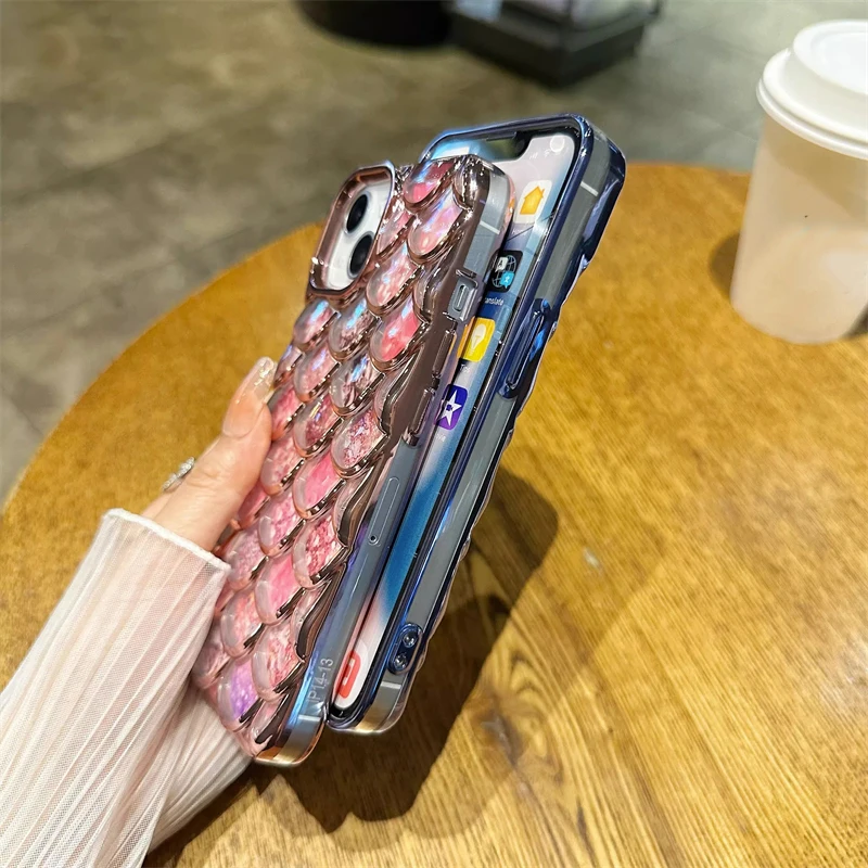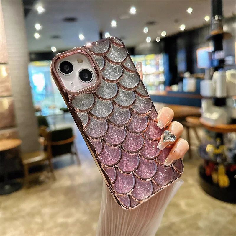 Funda de teléfono con patrón de escamas de pescado de sirena brillante de lujo para iPhone 13 Pro Max 15 14 11 12 cubierta anticaída galvanizada colorida