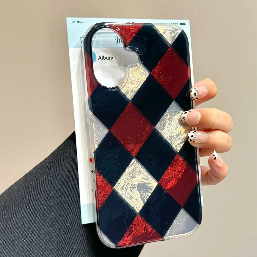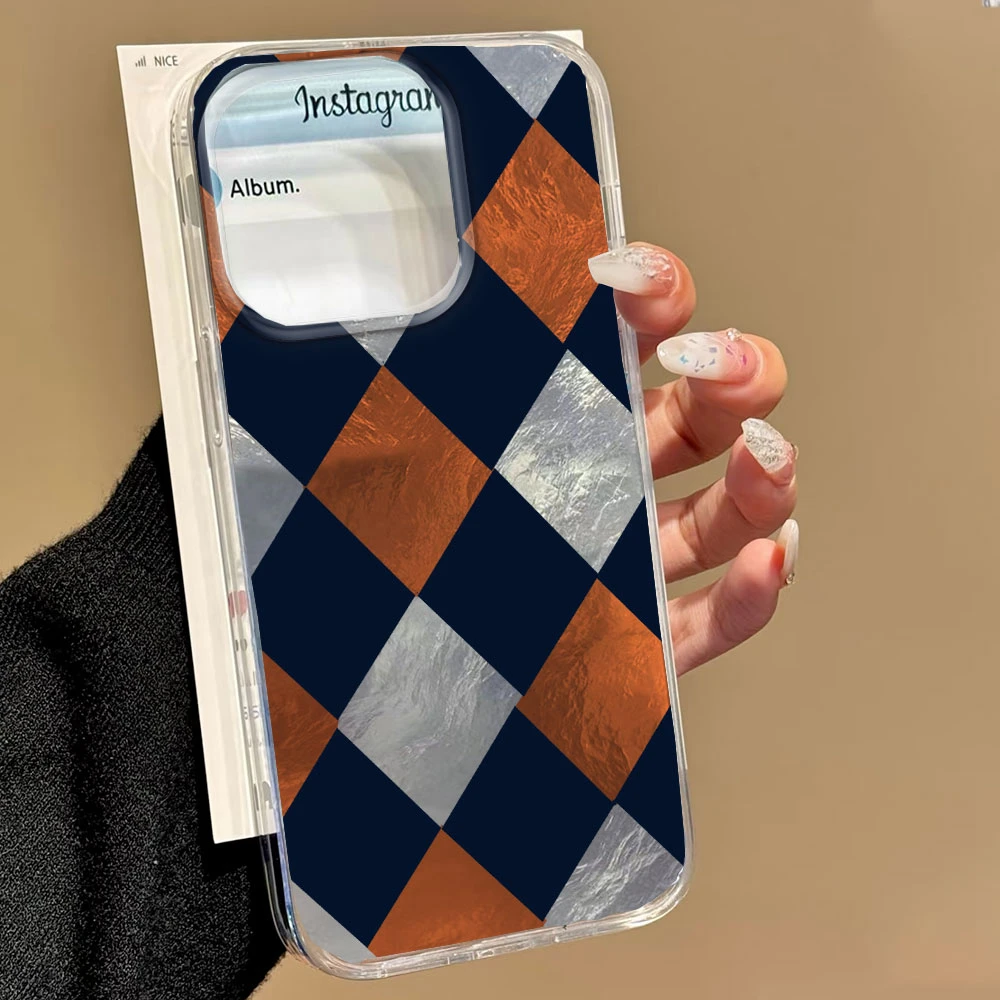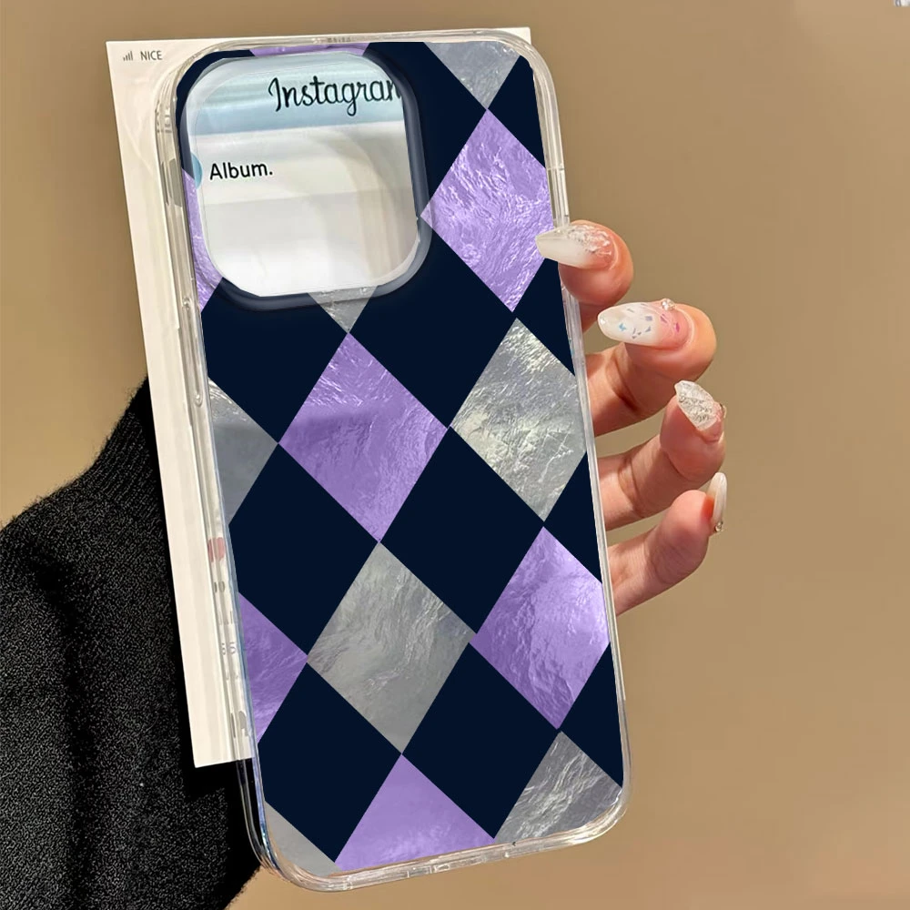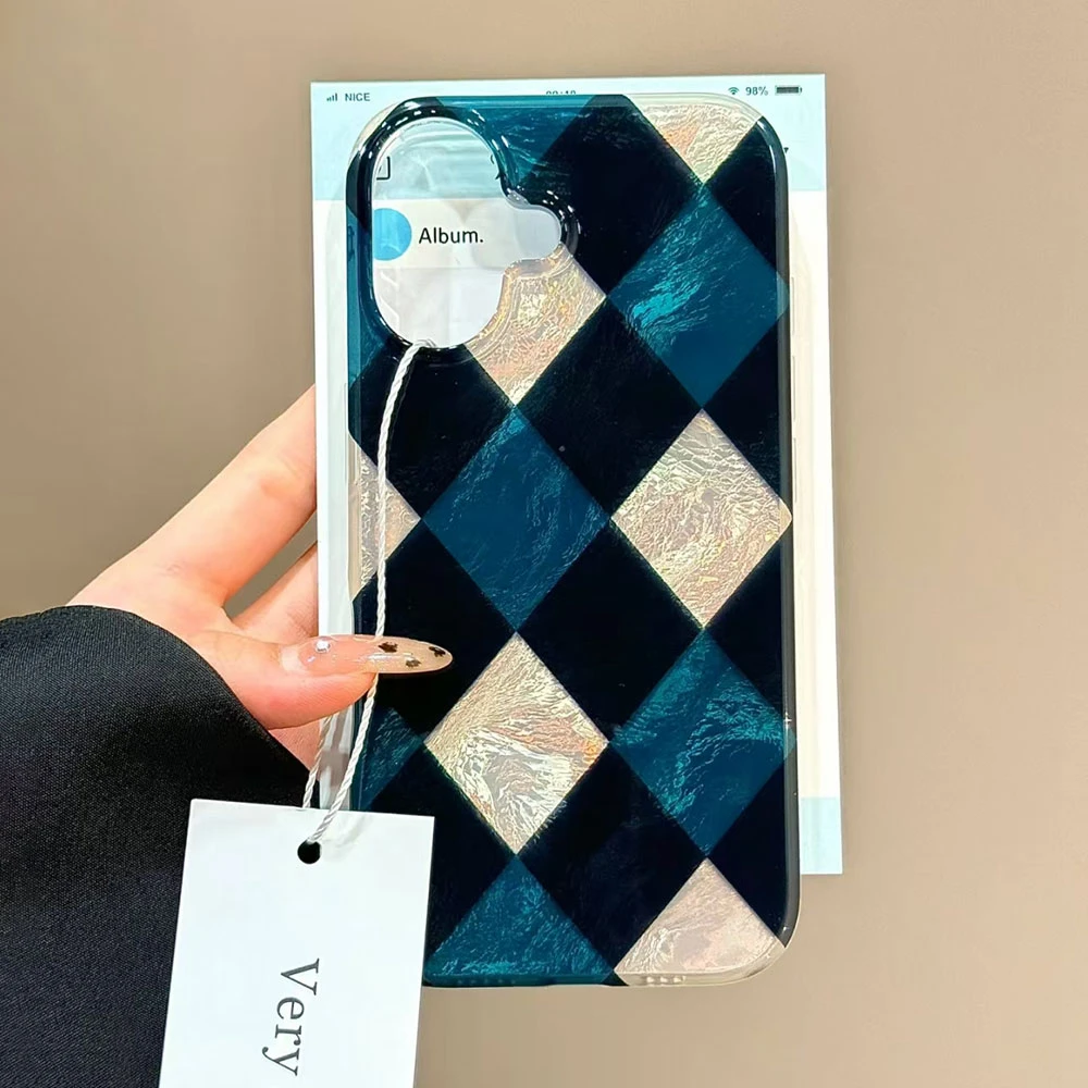 Comprar Funda de teléfono con patrón de rejilla de empalme coreano para iphone 17 Air 16 15 14 13 11 12 Pro Max 7 8 Plus X XS XR SE 2022 2020 16e TPU