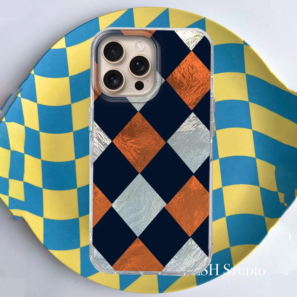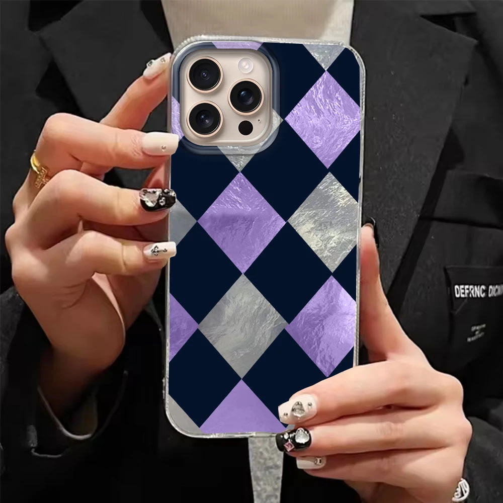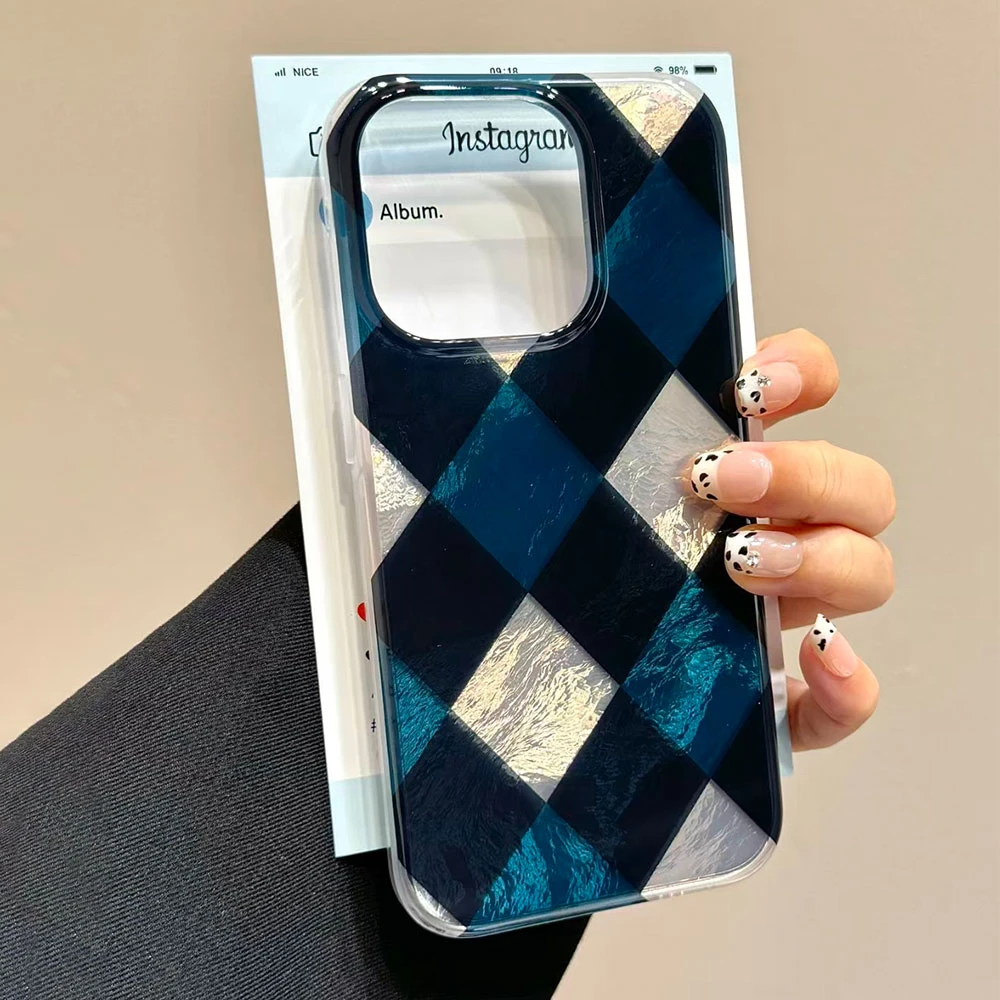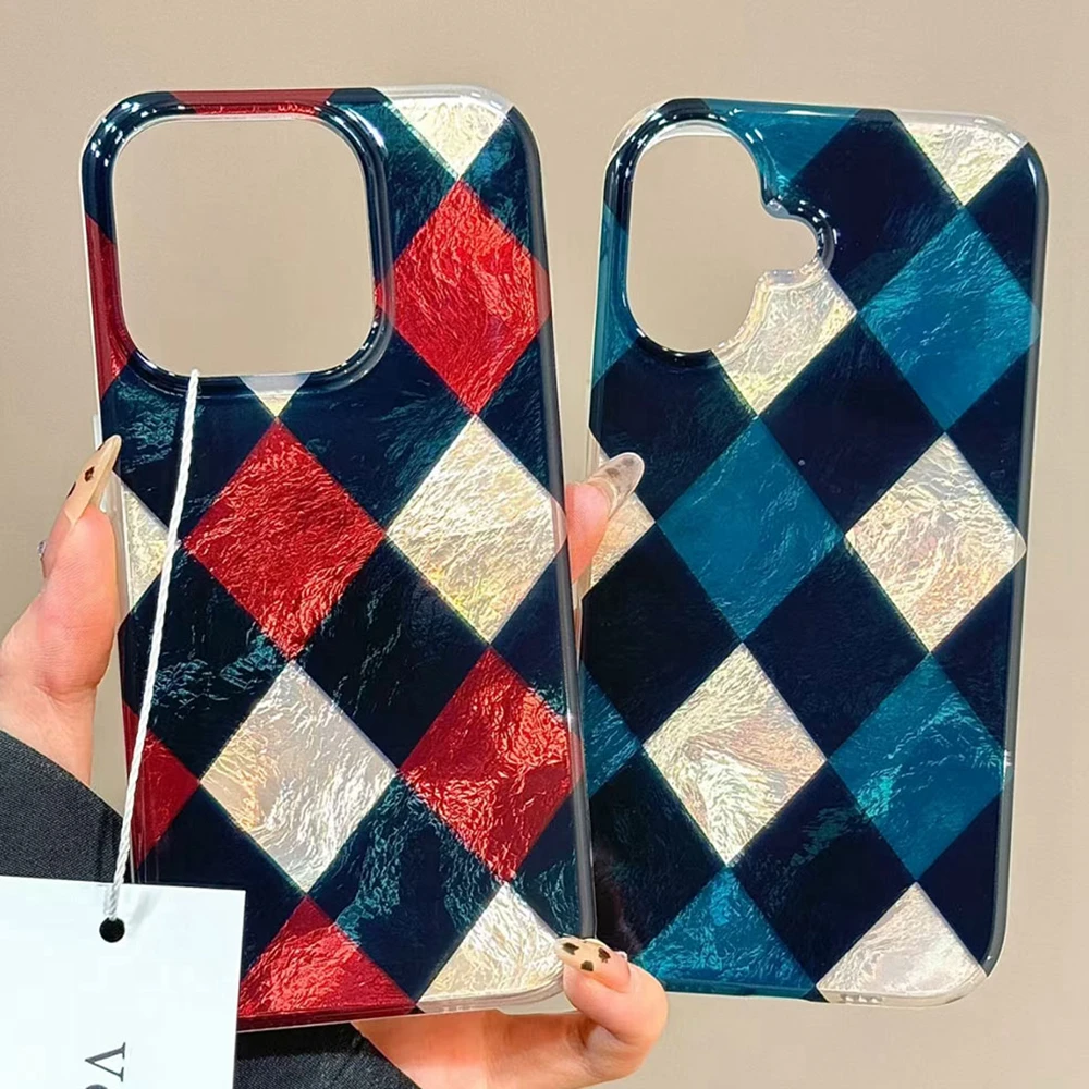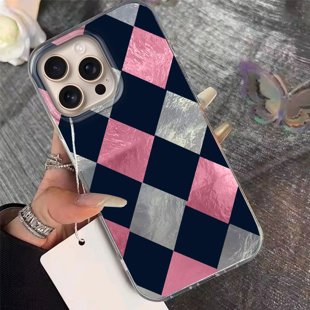 Comprar Funda de teléfono con patrón de rejilla de empalme coreano para iphone 17 Air 16 15 14 13 11 12 Pro Max 7 8 Plus X XS XR SE 2022 2020 16e TPU