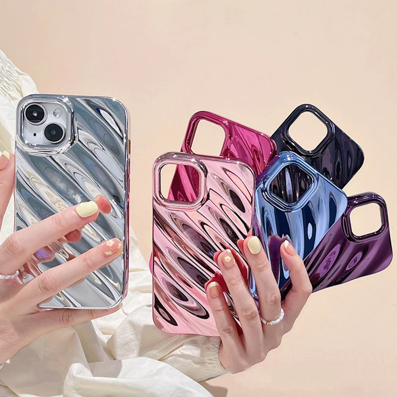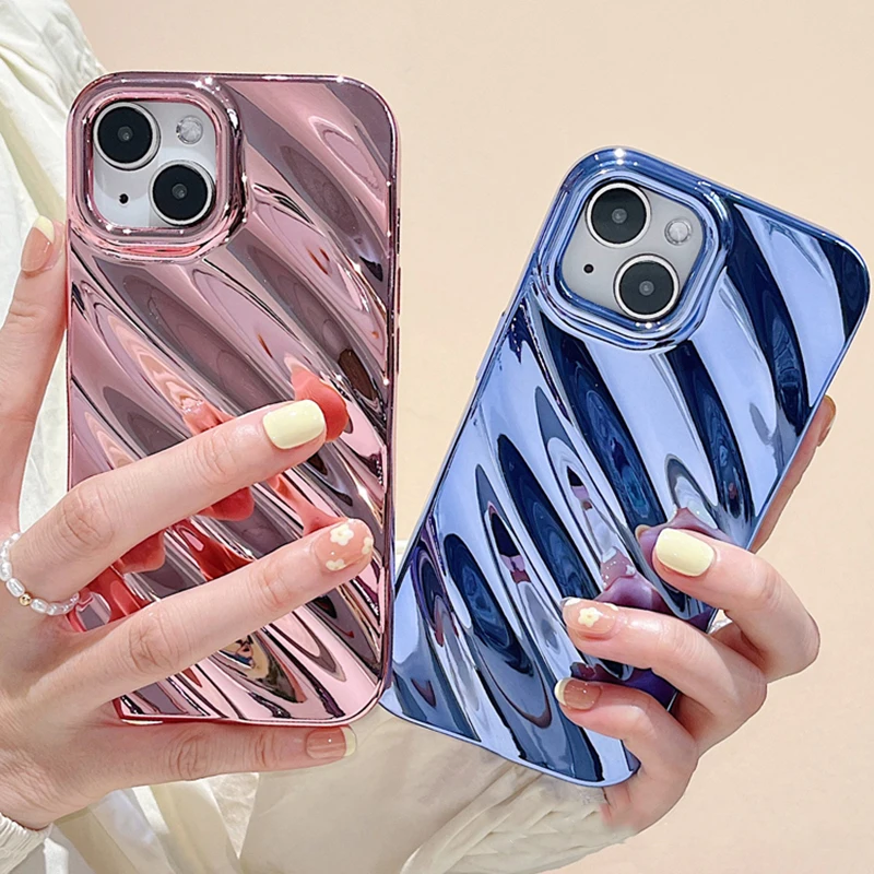 Glossy Silk Texture Pattern Phone Case For iPhone 14 13 11 12 Pro Max 14Pro 14 Plus Shockproof Soft Back Cover Coque Funda