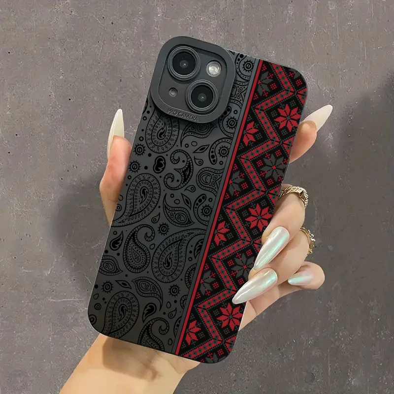 No es una mala funda, encaja bien. Se ve bonita; en la parte negra, el patrón parece un relieve, los rojos son solo patrones pintados, pero para mí, son un poco apagados. Sería mejor si los hicieran un poco más brillantes.