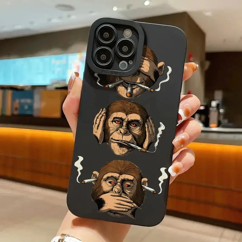 Funda de teléfono con patrón de tres monos de Hericium para iPhone 16 15 14 7 8 Plus XS X XR 14 13 11Pro Max 13 12 Mini SE2 cubierta a prueba de golpes