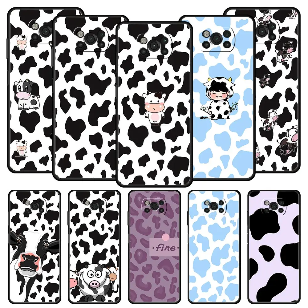 Comprar Funda de teléfono con patrón de vaca para Xiaomi, carcasa blanca y negra para Poco X6, X5 Pro, X4, X3, NFC, F5 Pro, F4, F3, GT, M5, M4 Pro, 5G, M3, C51, C50, C55