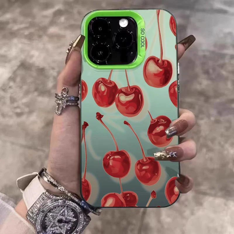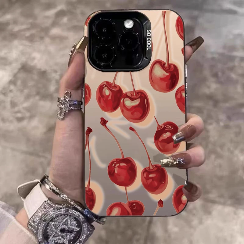 Funda de teléfono con patrones de cereza roja para iPhone 17 16 15 14 13 12 11 Pro Max XS X XR 7 8 Plus 16E 17 Air, fundas de parachoques a prueba de golpes