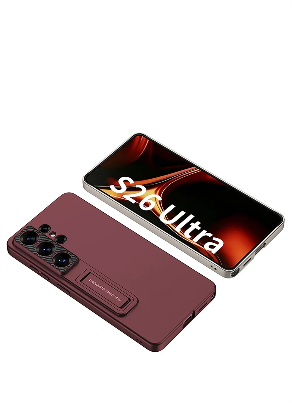Funda de teléfono de PC chapada con soporte plegable Invisible de lujo para Samsung S26 Ultra S26Ultra titanio protector de Color metálico cubierta trasera