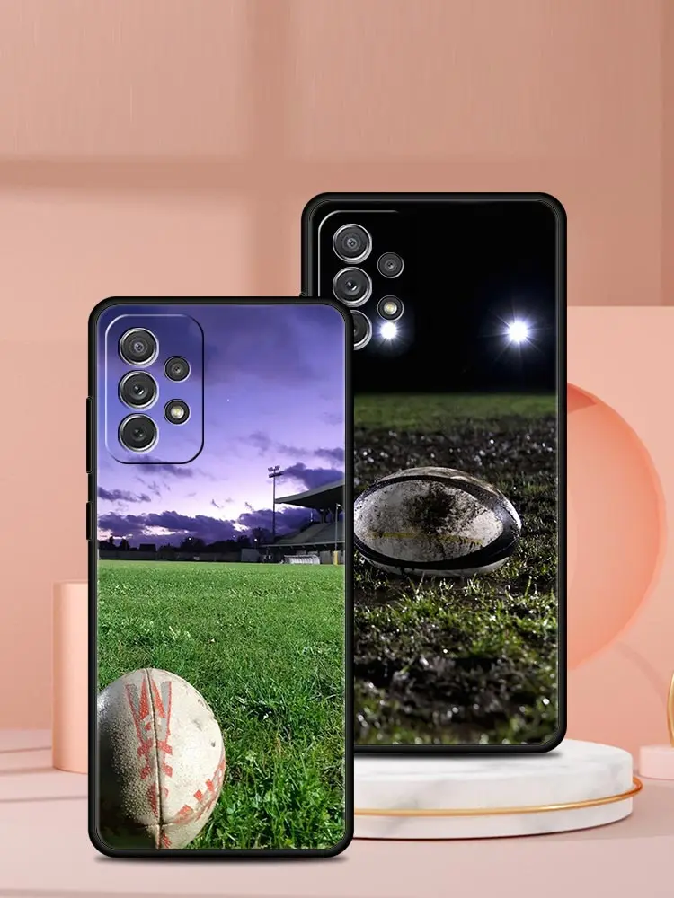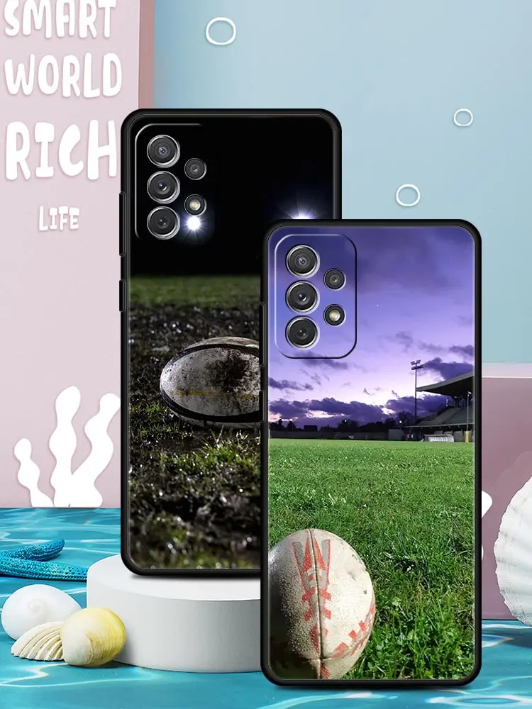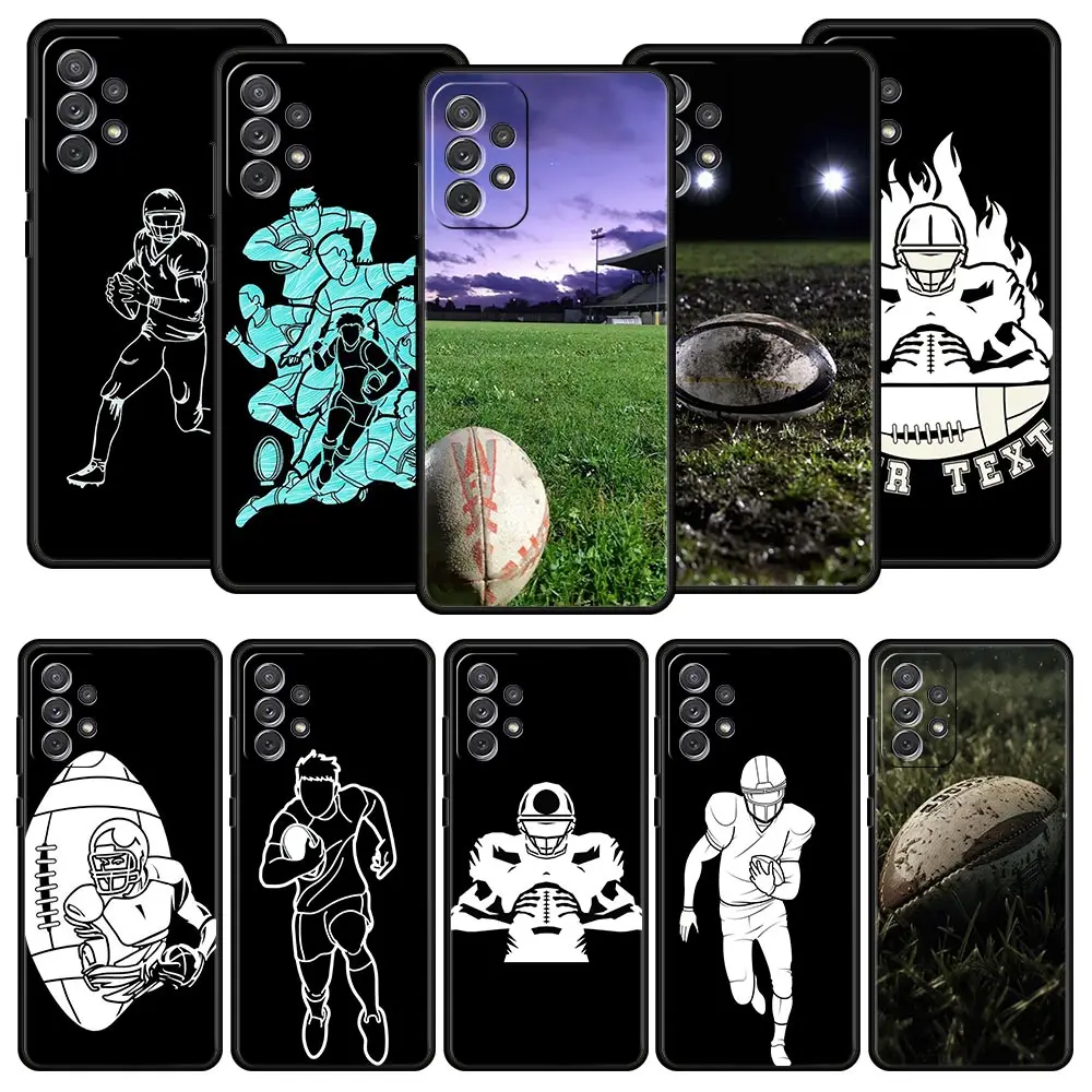 Funda de teléfono con pelota de Rugby para Samsung Galaxy A35 A55 A15 A13 A51 A71 A41 A31 A21S A03S A05 A12 A32 A52 A23 A25 A33 A53 A73 5G