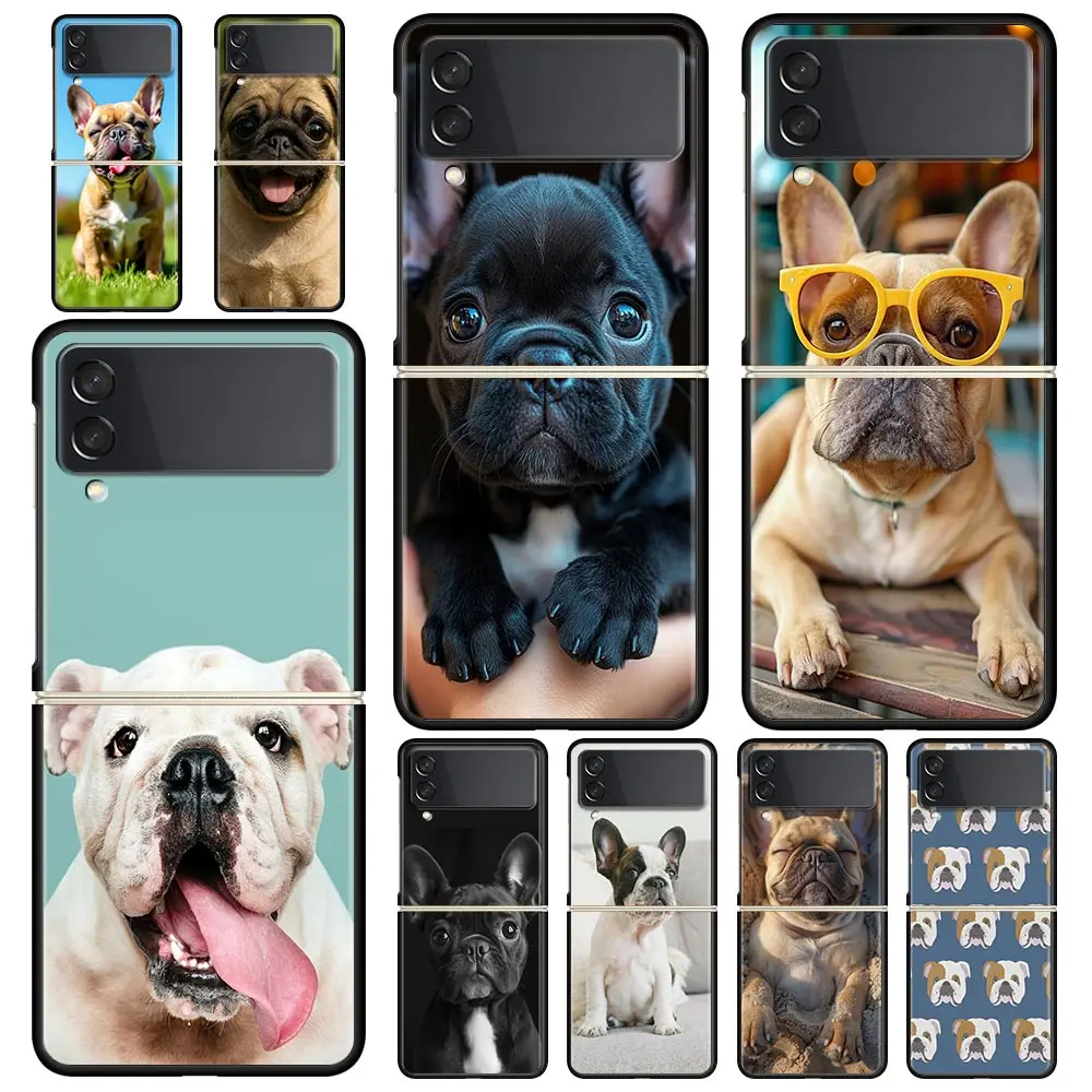 Funda de teléfono para perro Bulldog Francés para Samsung Galaxy Z Flip3 Flip4 Flip5, carcasa para Z Flip 3 4 5 6 7, funda trasera plegable dura - imagen 1
