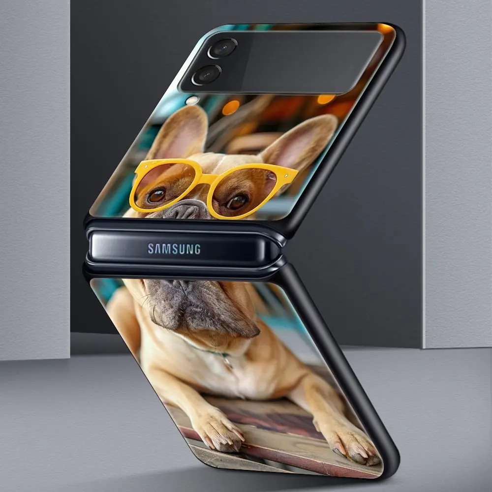 Funda de teléfono para perro Bulldog Francés para Samsung Galaxy Z Flip3 Flip4 Flip5, carcasa para Z Flip 3 4 5 6 7, funda trasera plegable dura