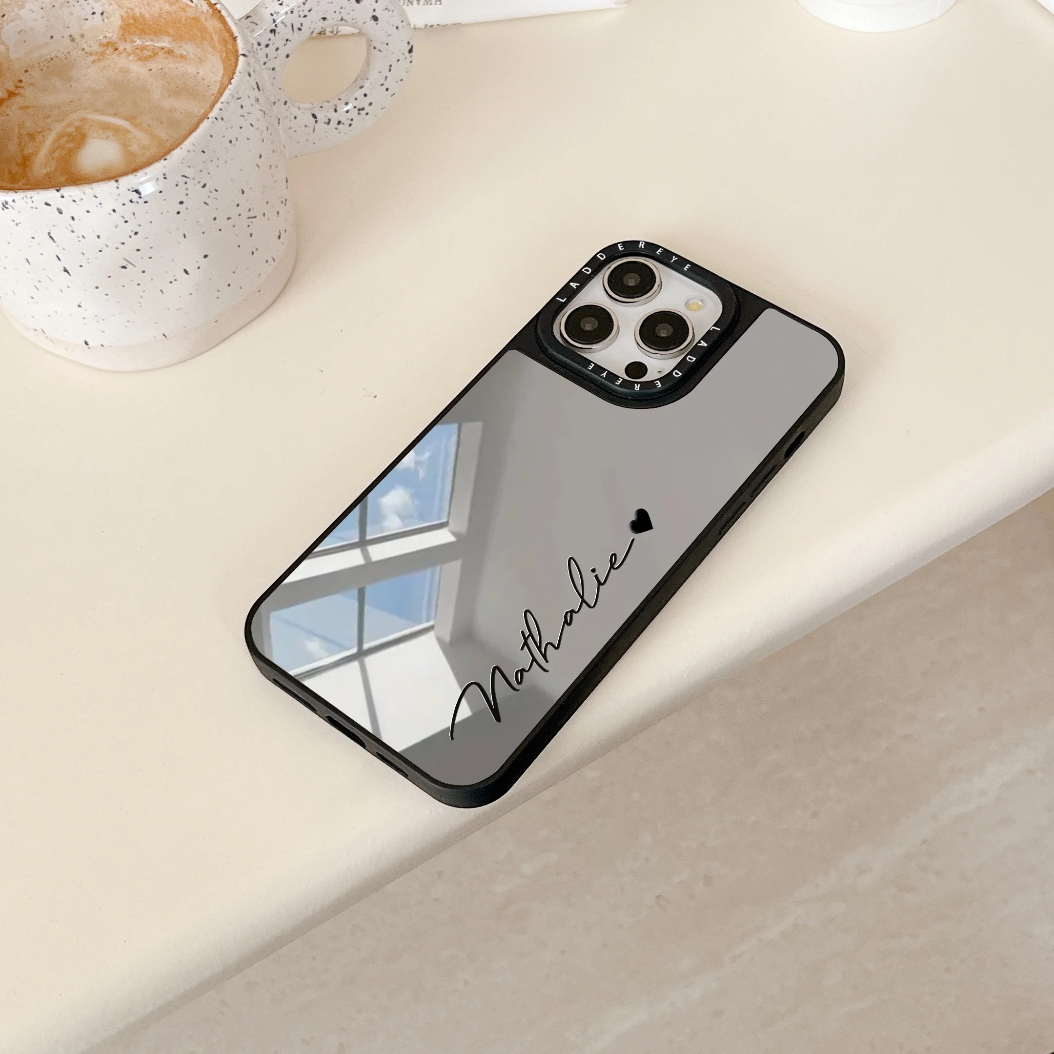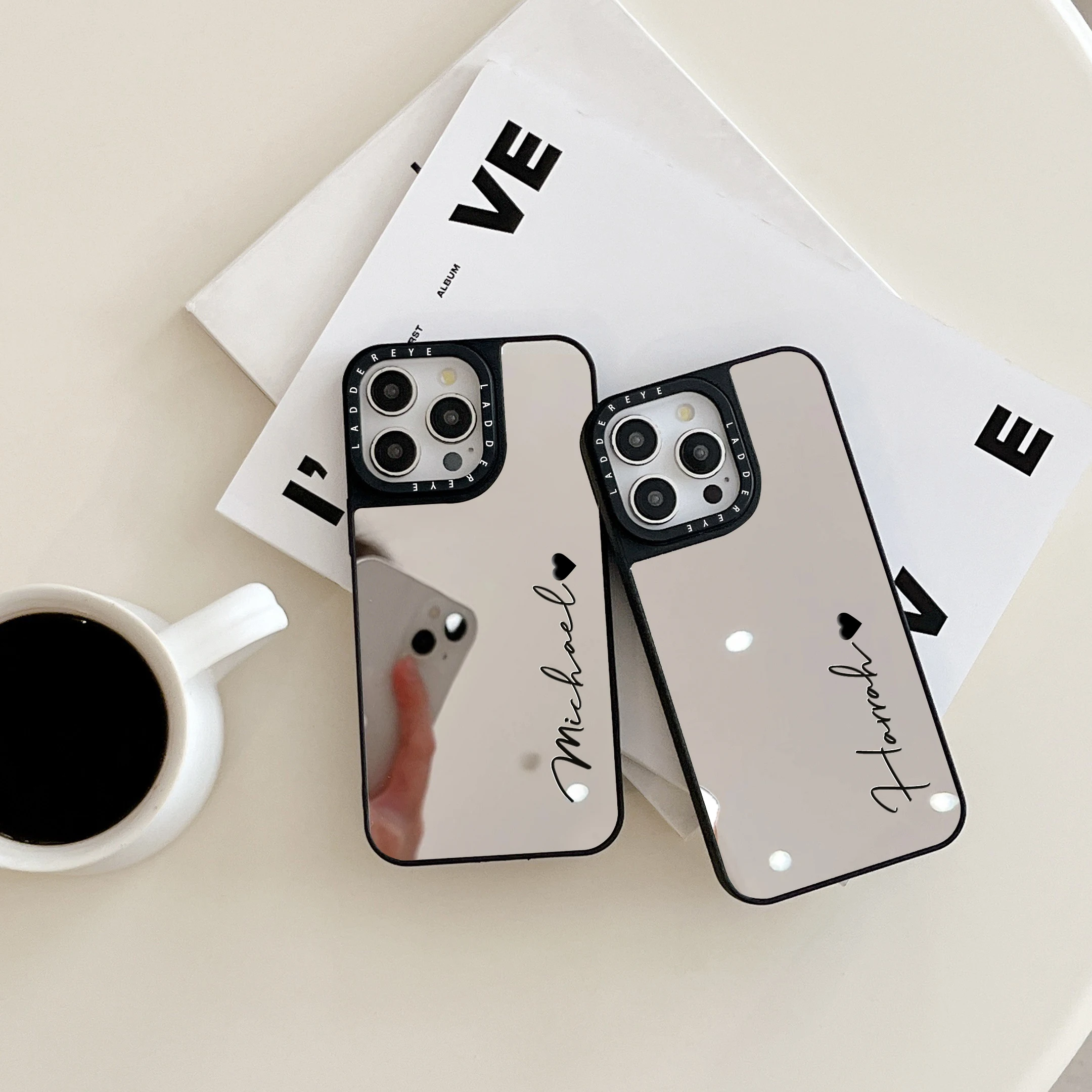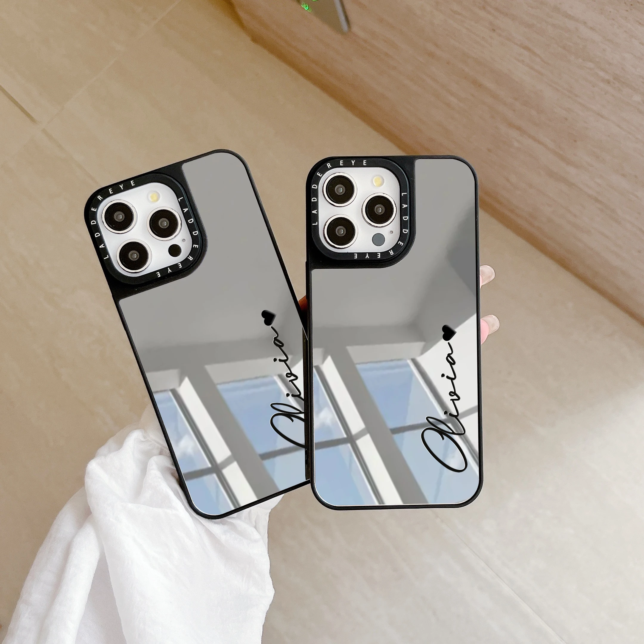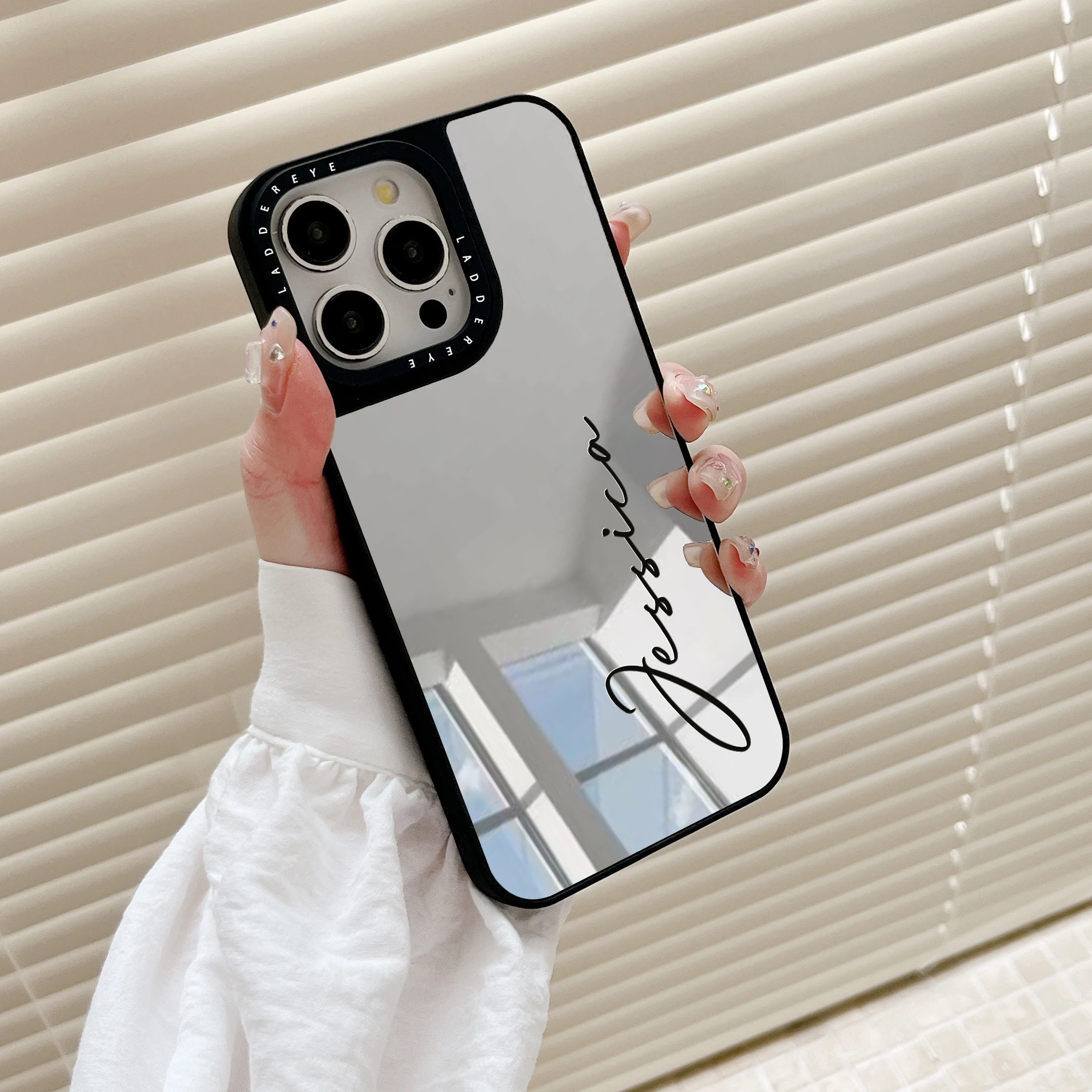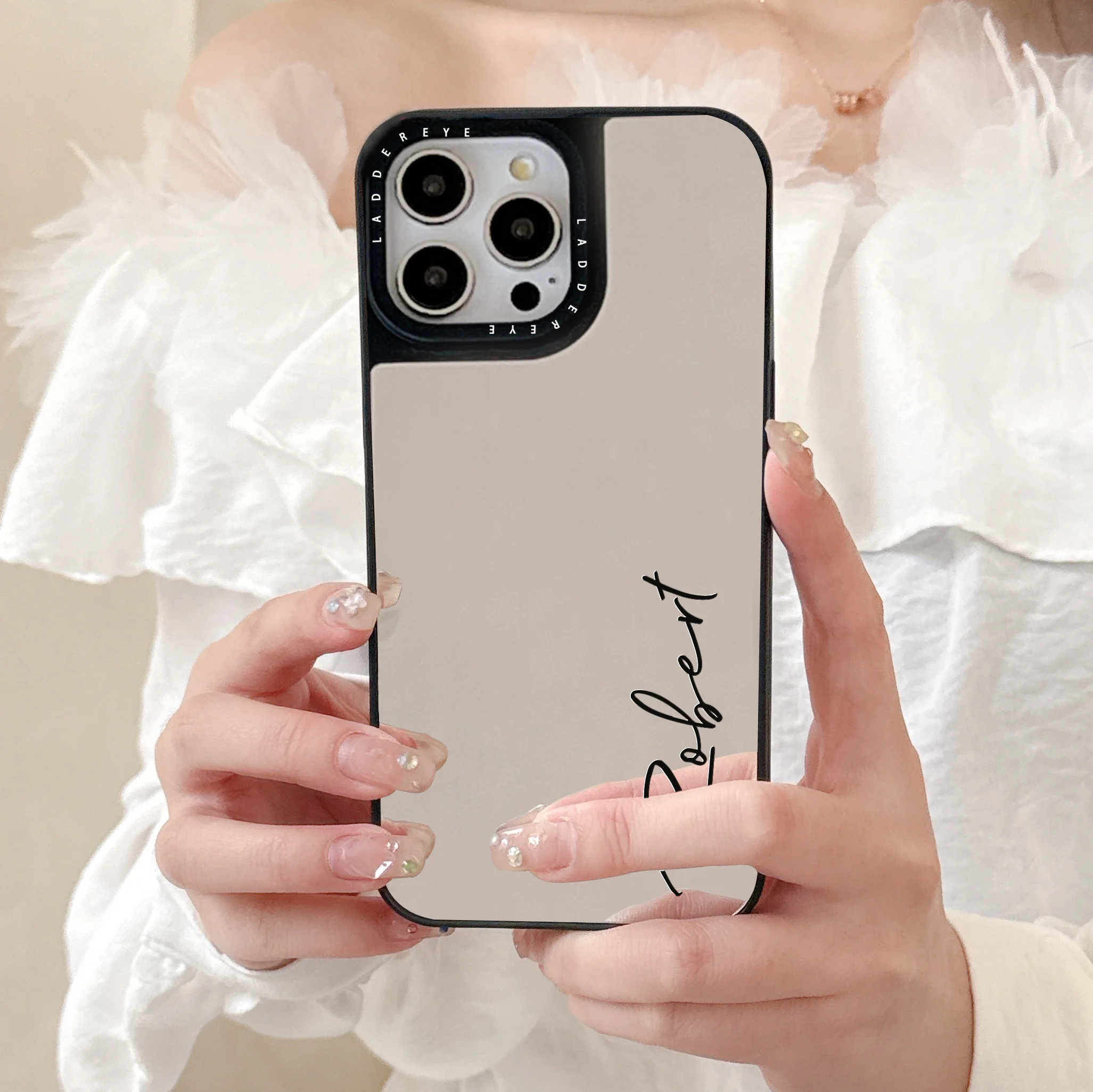 Funda de teléfono con nombre personalizado y espejo de maquillaje a la moda para iPhone 16 15 14 13 12 11 Pro Max Plus, funda de regalo a prueba de golpes