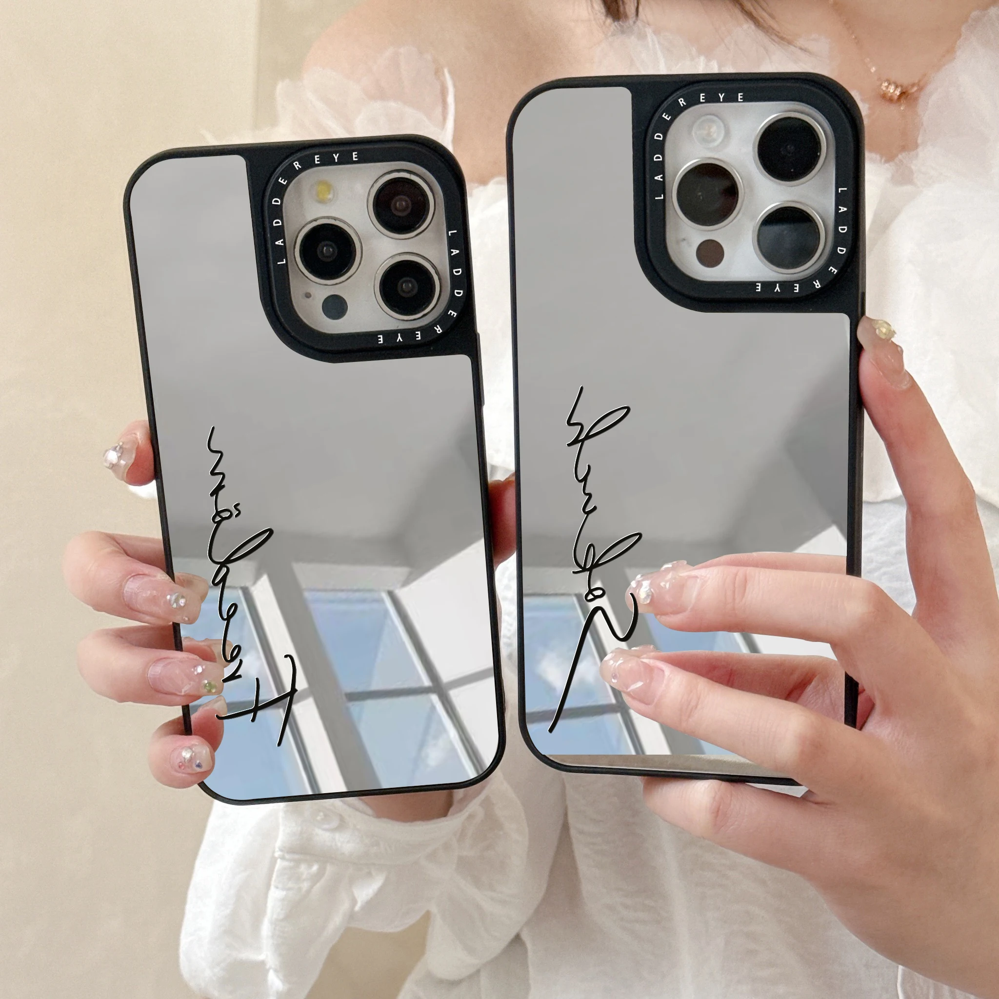 Comprar Funda de teléfono personalizada con espejo de maquillaje a la moda para iPhone 16 15 14 13 12 11 Pro Max Plus, funda de regalo a prueba de golpes