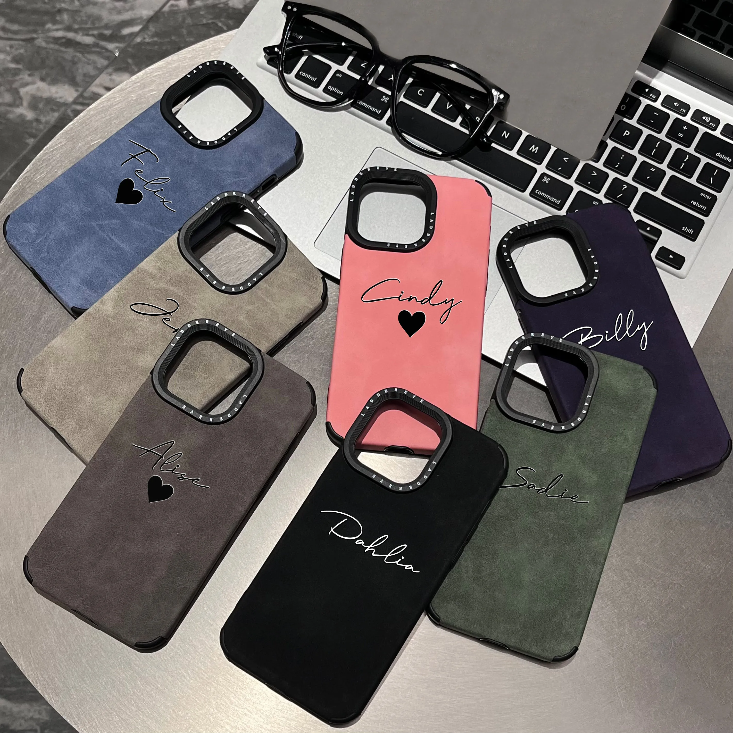 Funda de teléfono personalizada con letras de nombre personalizadas para iphone17 16 15 14 13 12 11 Pro Max Plus, regalos de lujo de piel sintética a prueba de golpes