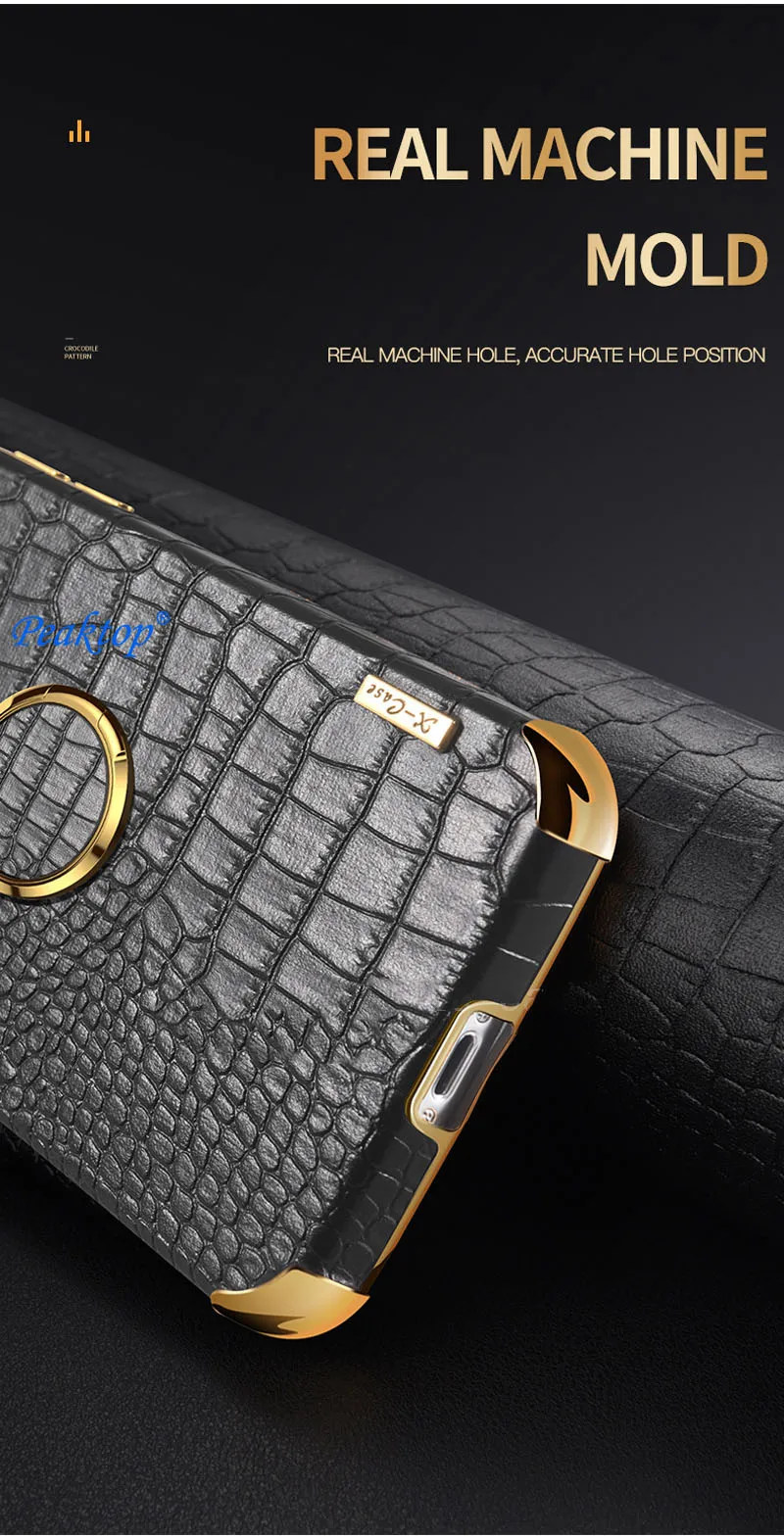 Funda de teléfono de cuero de cocodrilo para Samsung Galaxy A12 A22 A42 A21s A52 A72 A32 A11 M32 M62 cubierta de soporte de anillo de Metal S21 Ultra FE 4G