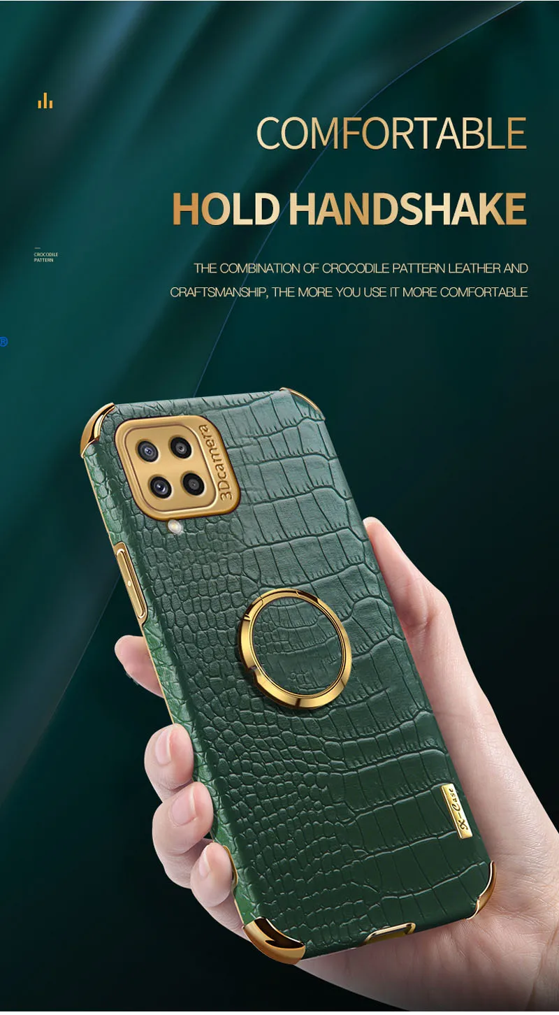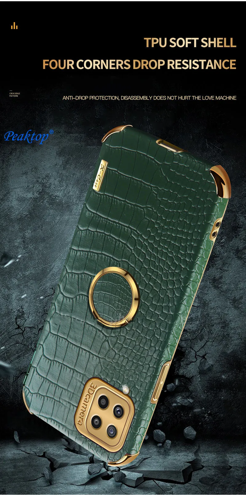 Funda de teléfono de cuero de cocodrilo para Samsung Galaxy A12 A22 A42 A21s A52 A72 A32 A11 M32 M62 cubierta de soporte de anillo de Metal S21 Ultra FE 4G