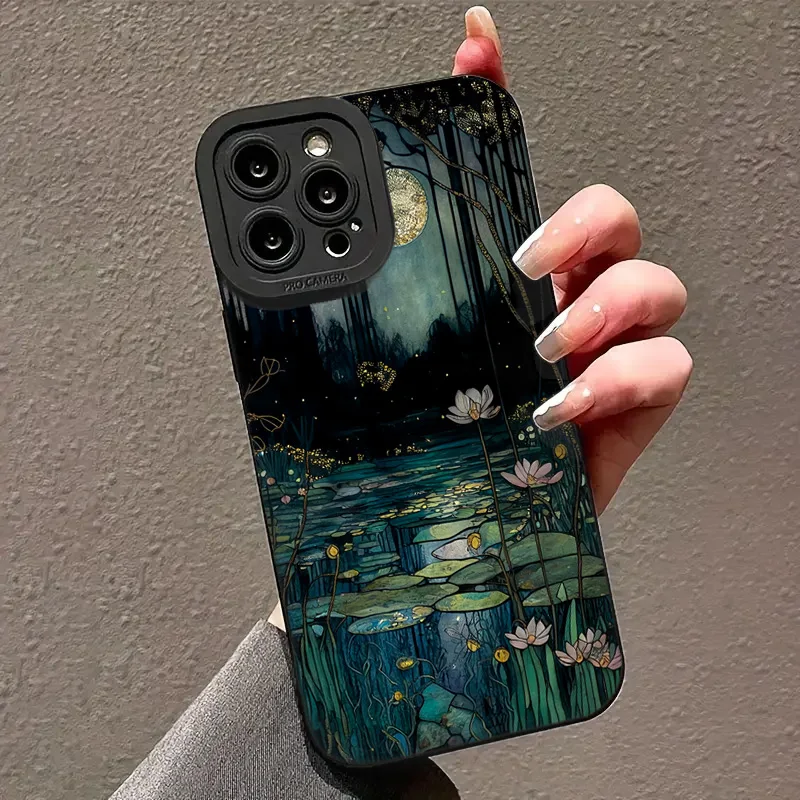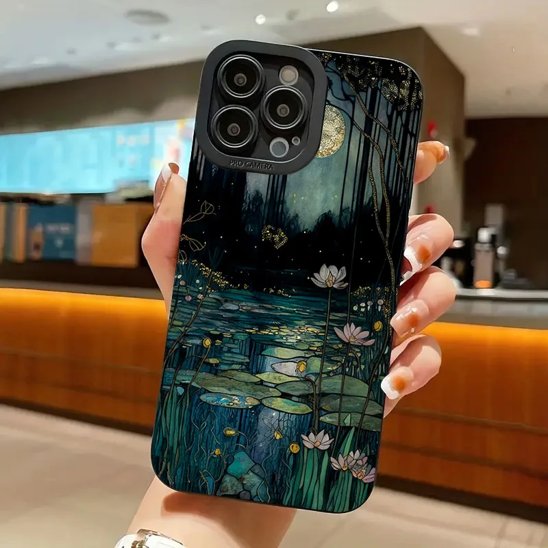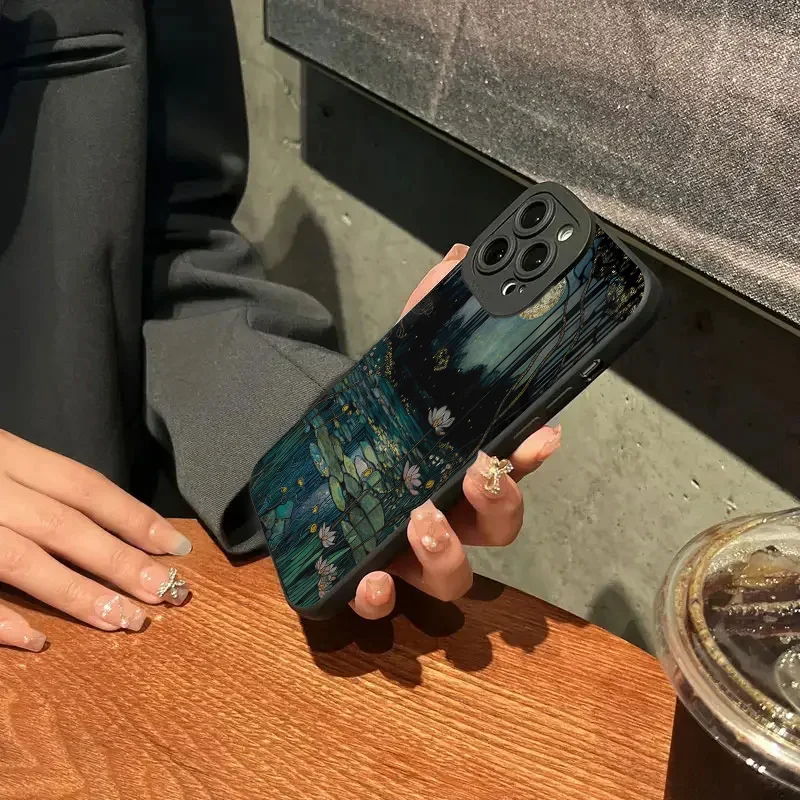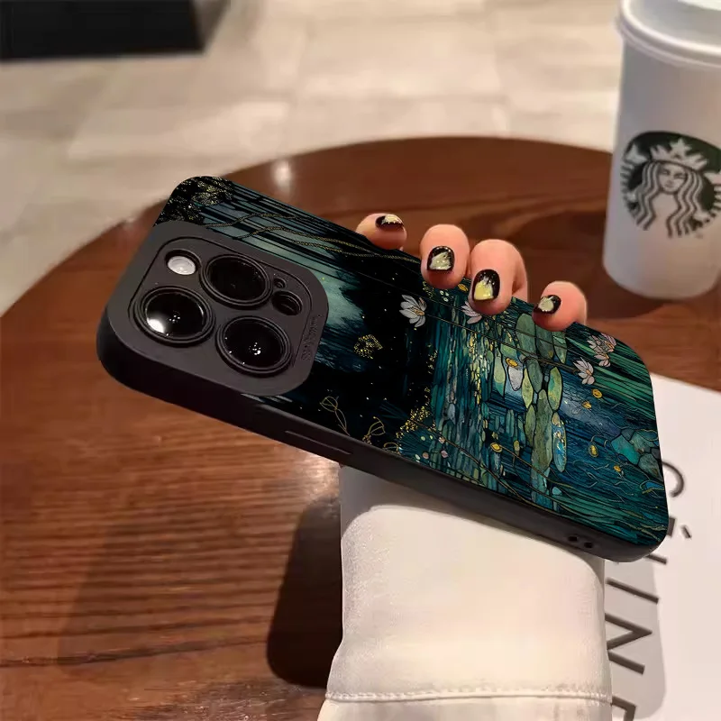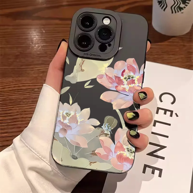 Funda de teléfono pintada colorida de lirio de agua y hoja de loto para Samsung Galaxy S25 S24 S23 S22 Ultra S21 FE A55 A16 A54 A35 A15 A14 A53