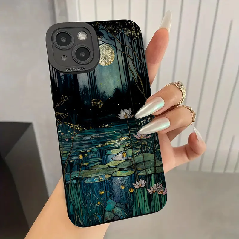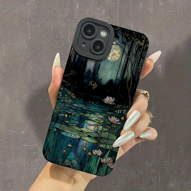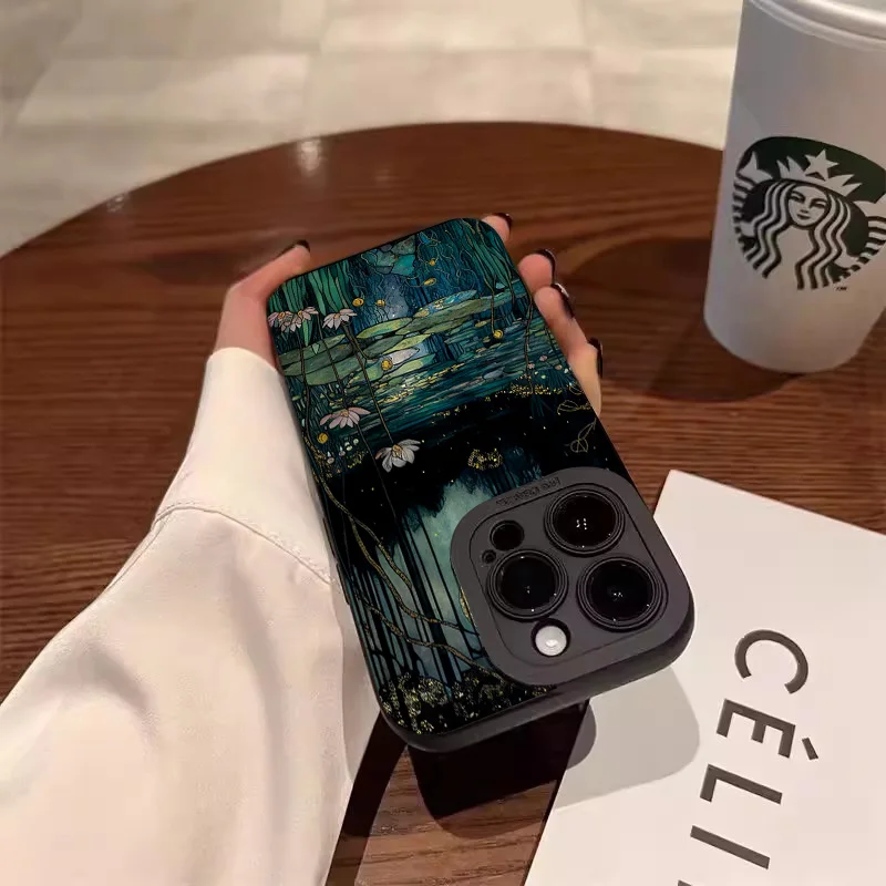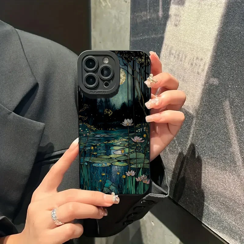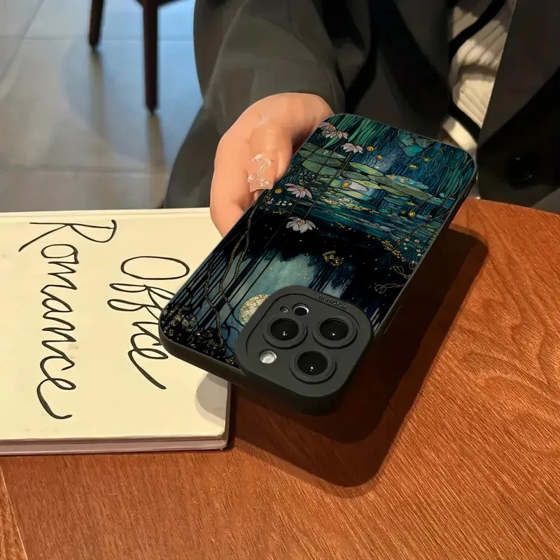 Funda de teléfono pintada colorida de lirio de agua y hoja de loto para Samsung Galaxy S25 S24 S23 S22 Ultra S21 FE A55 A16 A54 A35 A15 A14 A53
