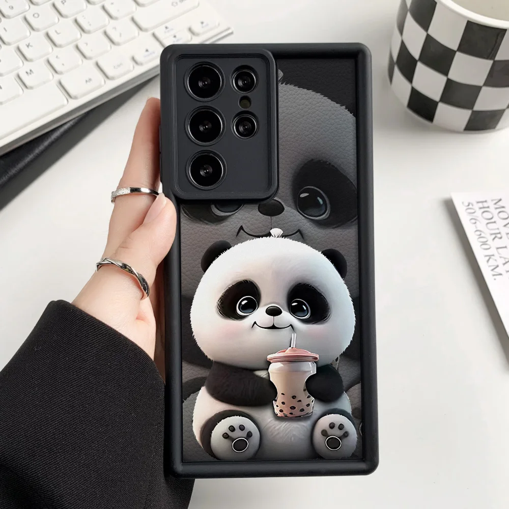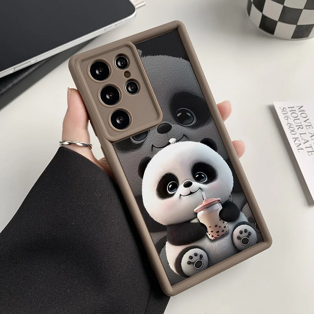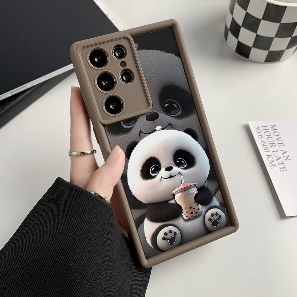 Funda de teléfono pintada con Panda de silicona líquida para Samsung S25 Ultra Funda Galaxy S24 Plus S23 FE S22 S21 S20 FE Funda a prueba de golpes