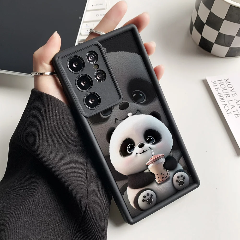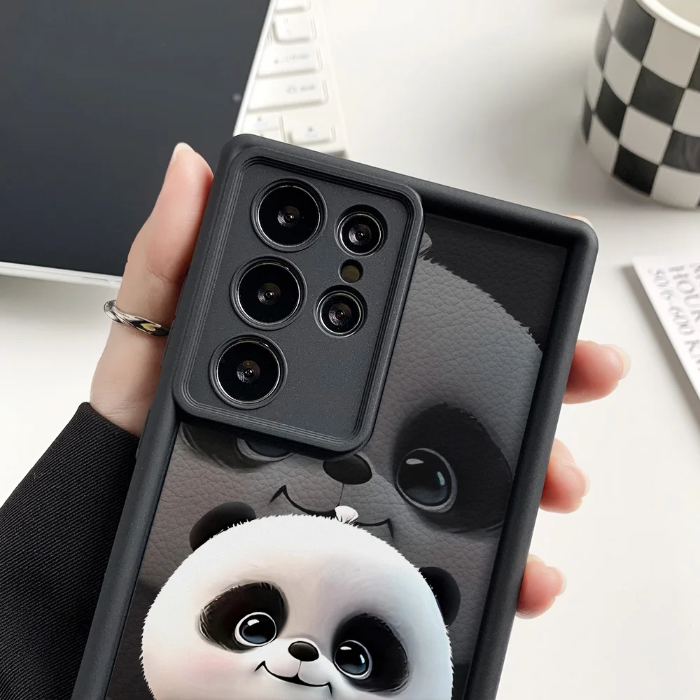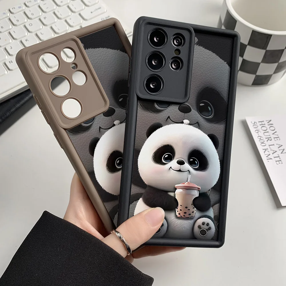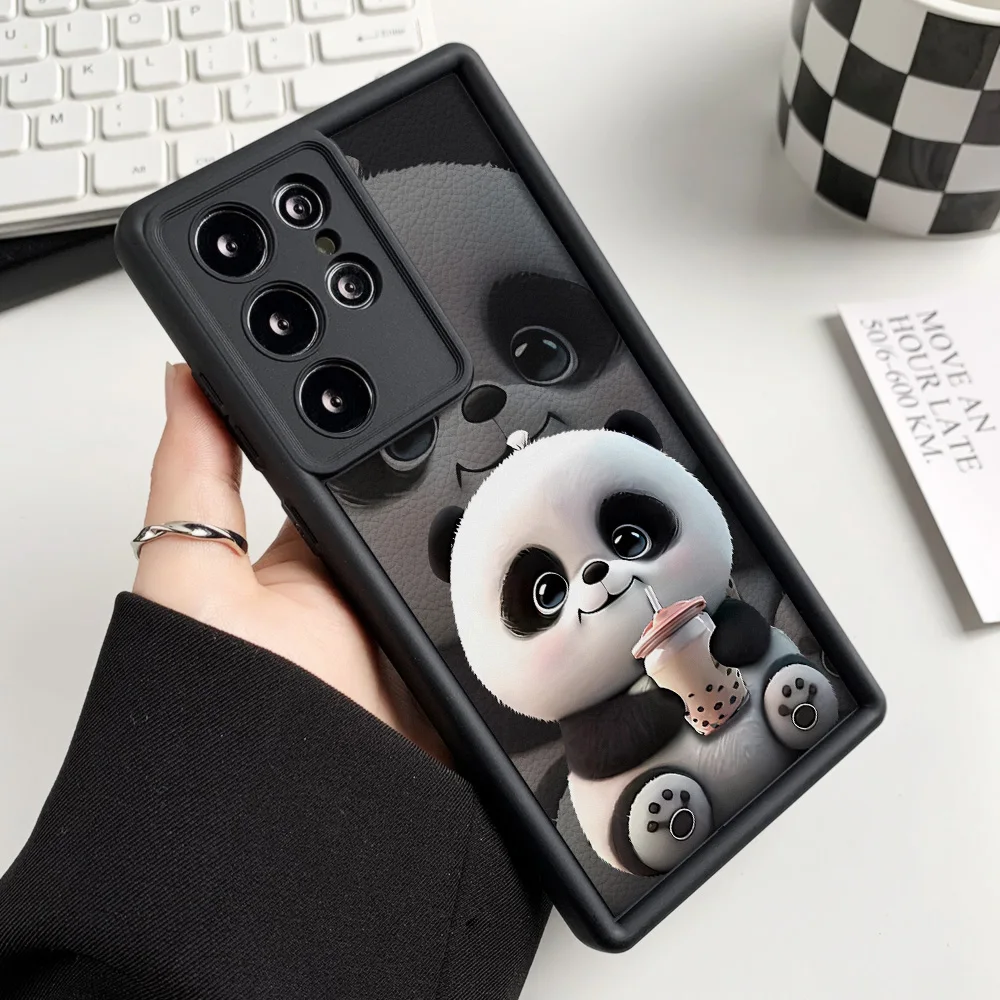 Funda de teléfono pintada con Panda de silicona líquida para Samsung S25 Ultra Funda Galaxy S24 Plus S23 FE S22 S21 S20 FE Funda a prueba de golpes