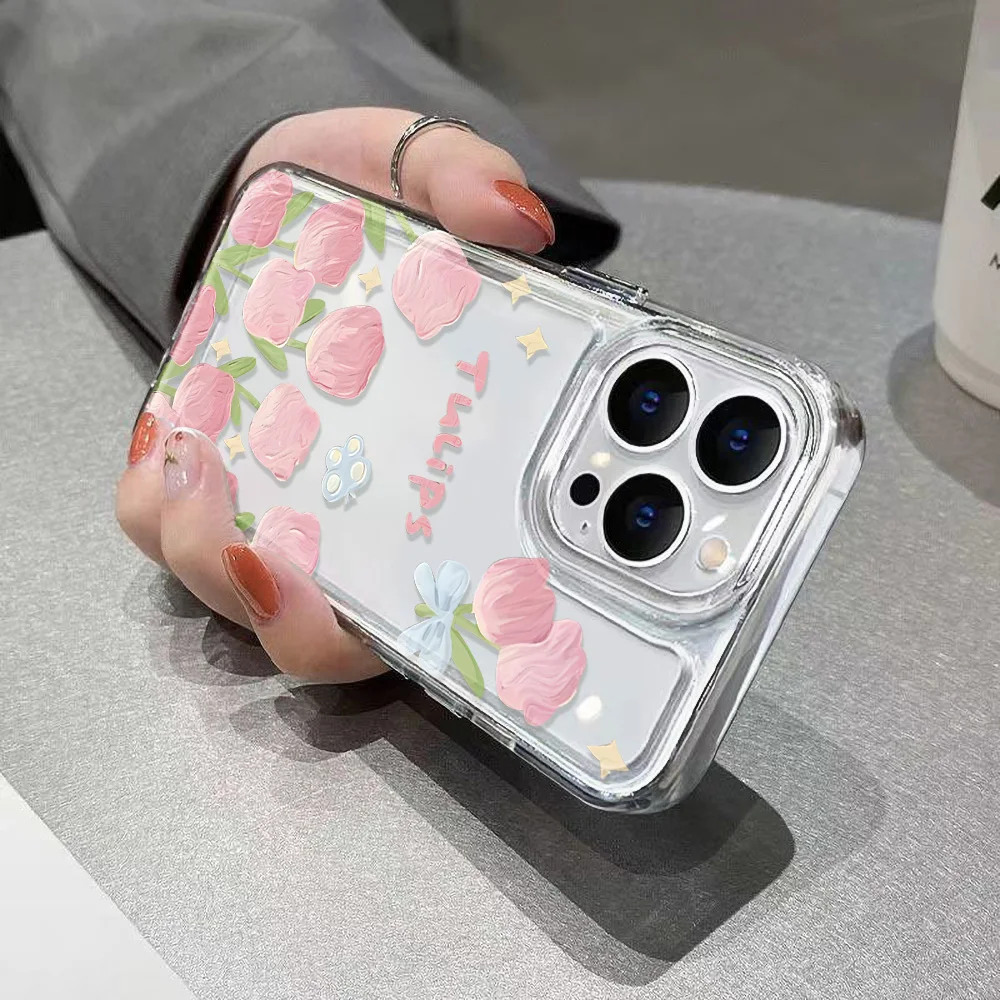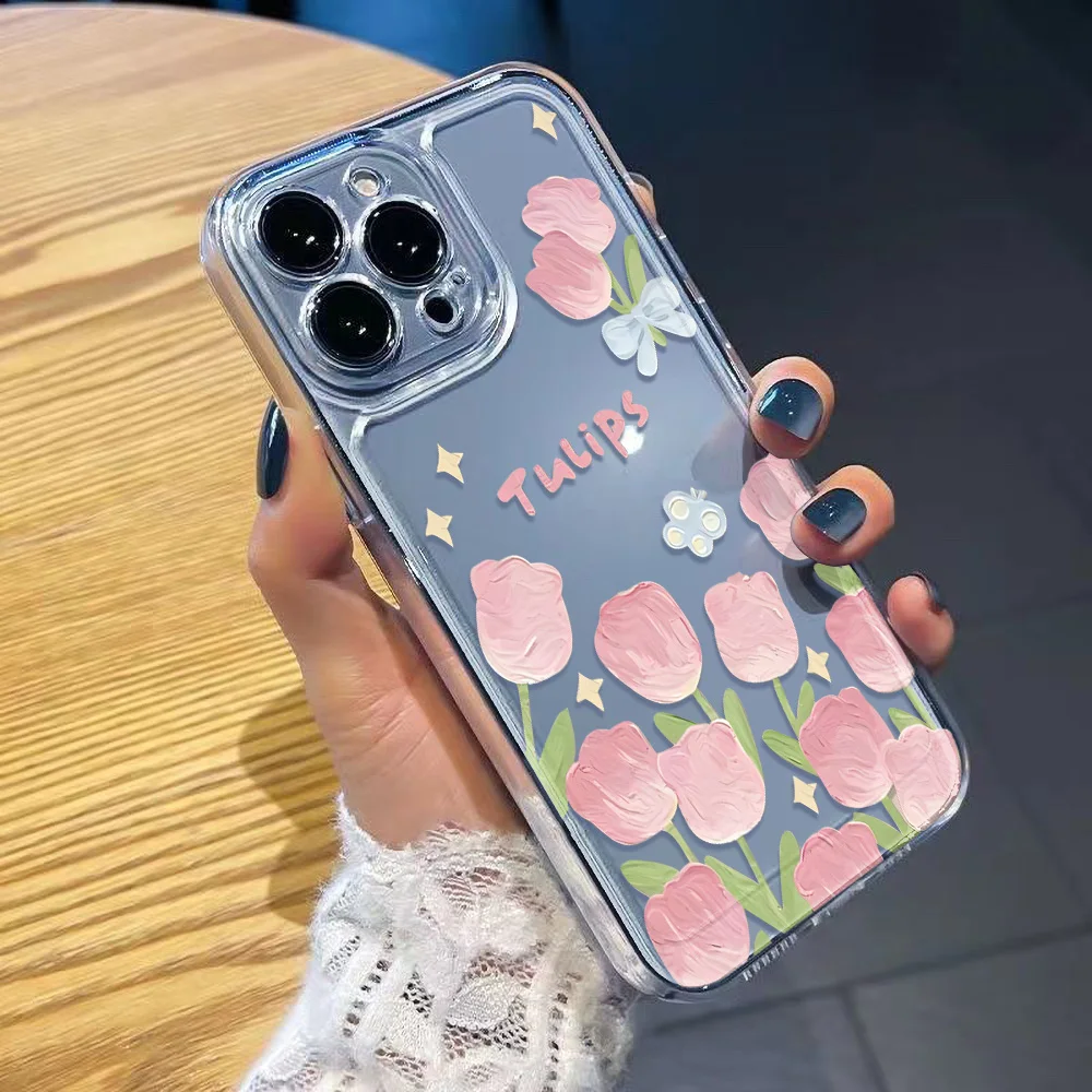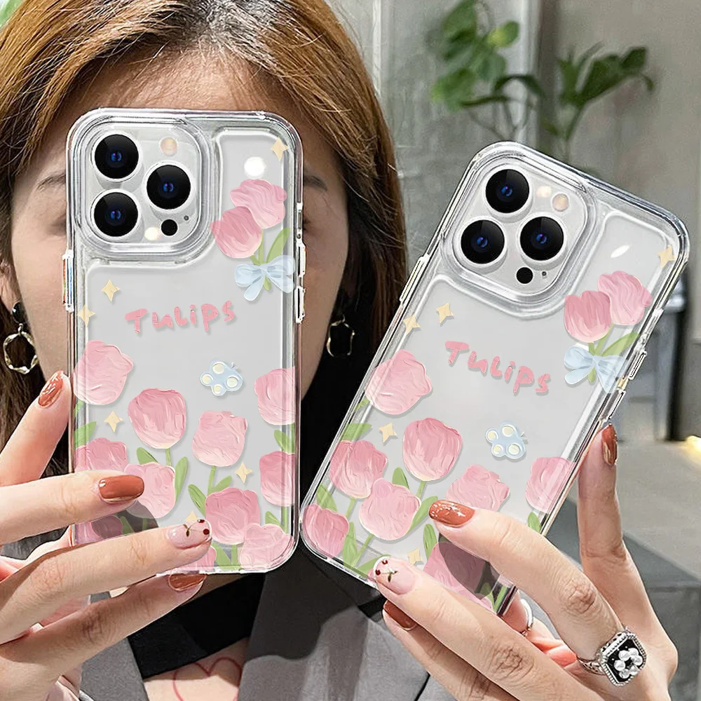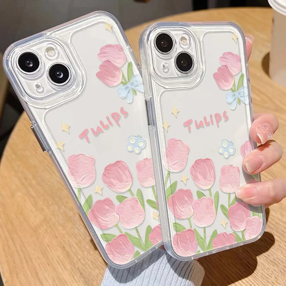 Funda de teléfono pintada con tulipán para iPhone 13 11 16 Pro Max 15 14 12 16promax 15promax funda transparente de silicona suave a prueba de golpes