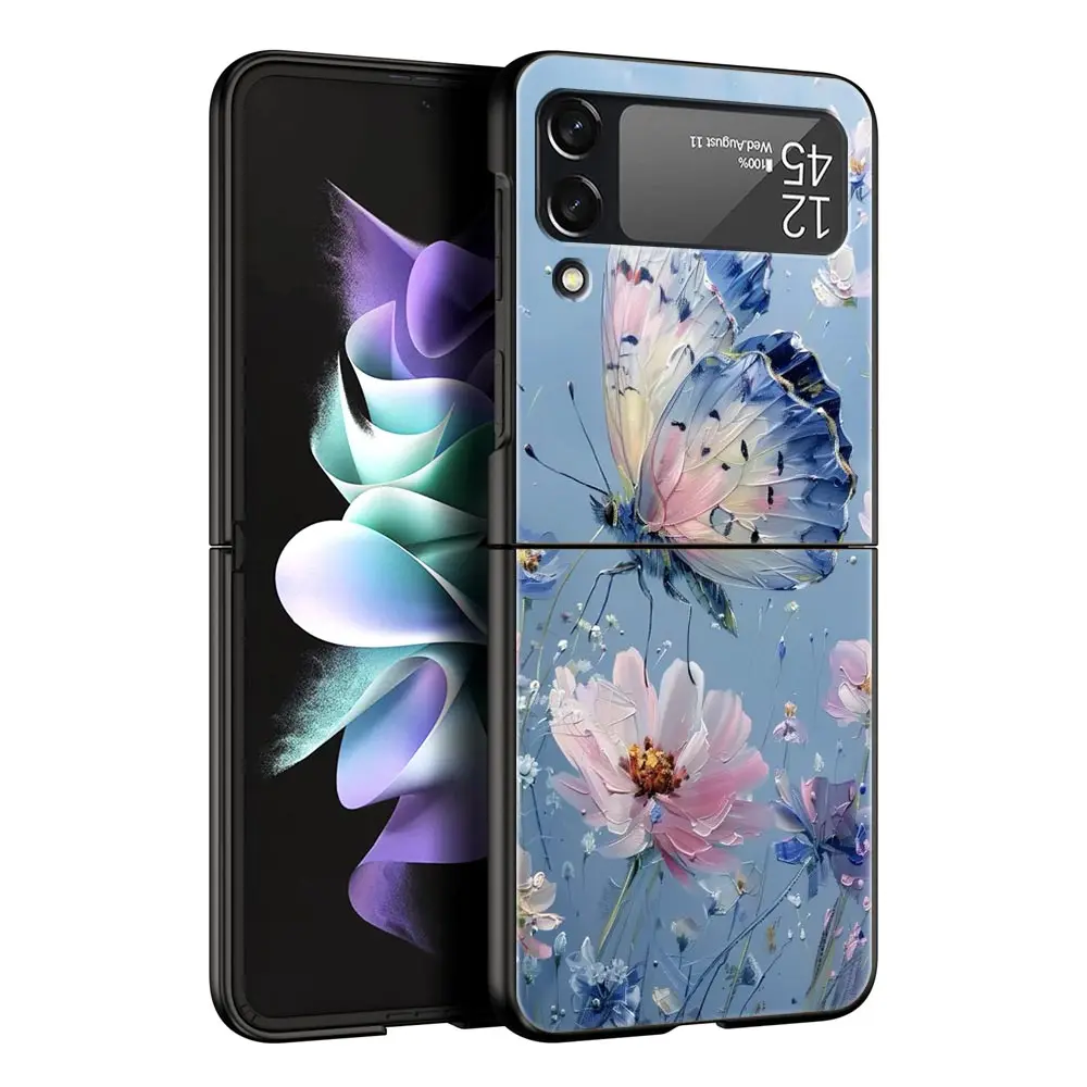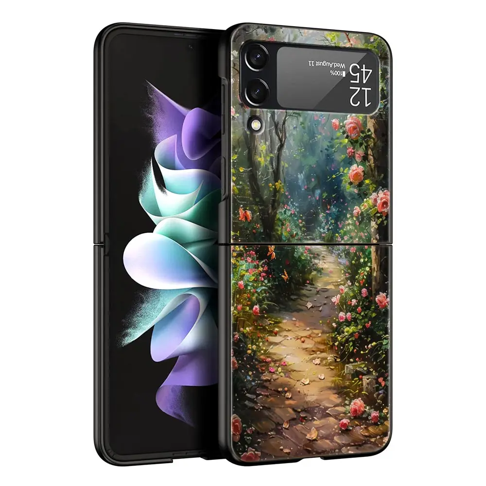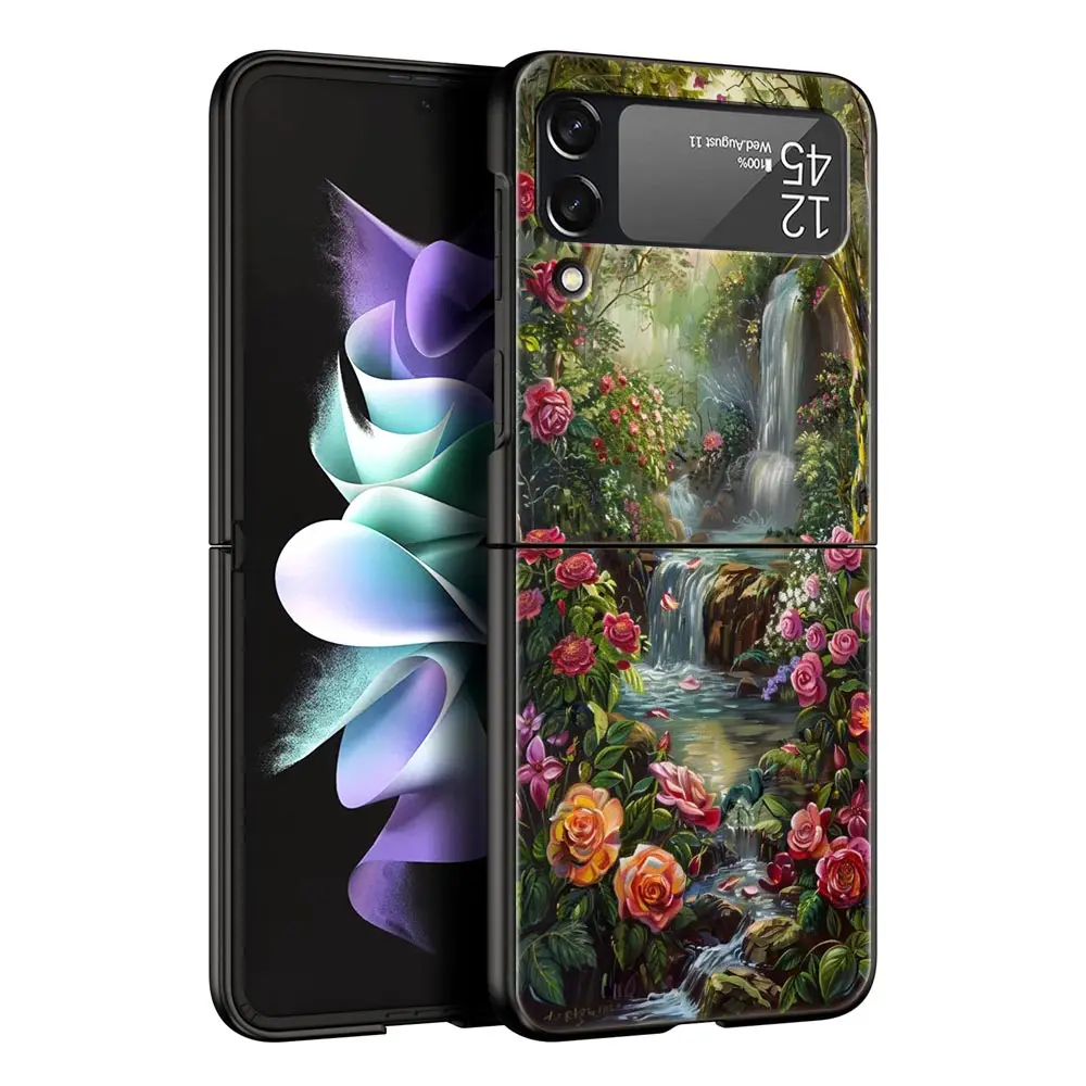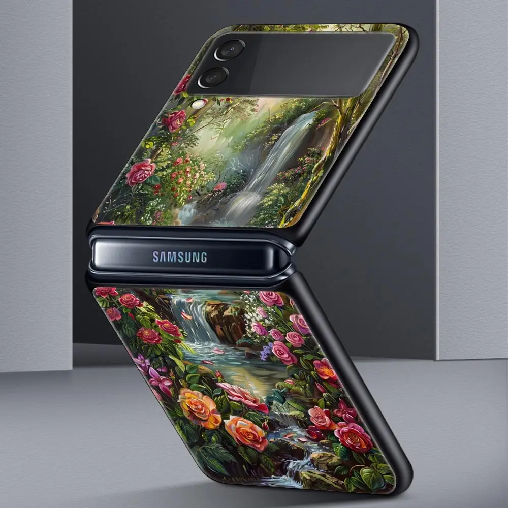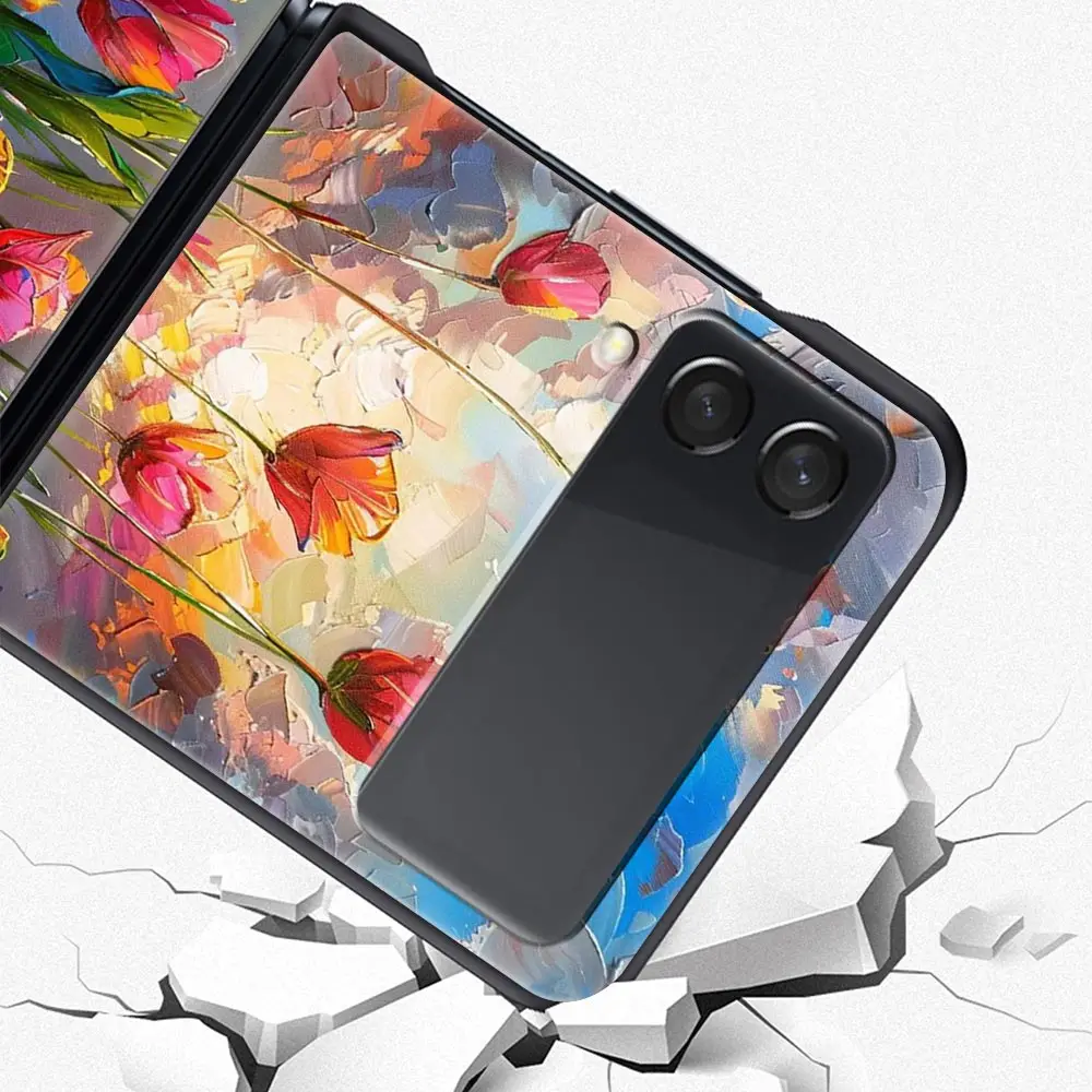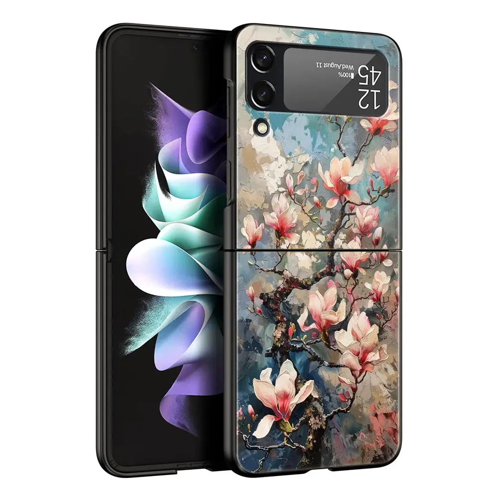 Comprar Funda de teléfono con pintura al óleo de flores para Samsung Galaxy Z Flip3 Flip4 Flip5, carcasa para Z Flip 3 4 5 6, funda plegable dura negra