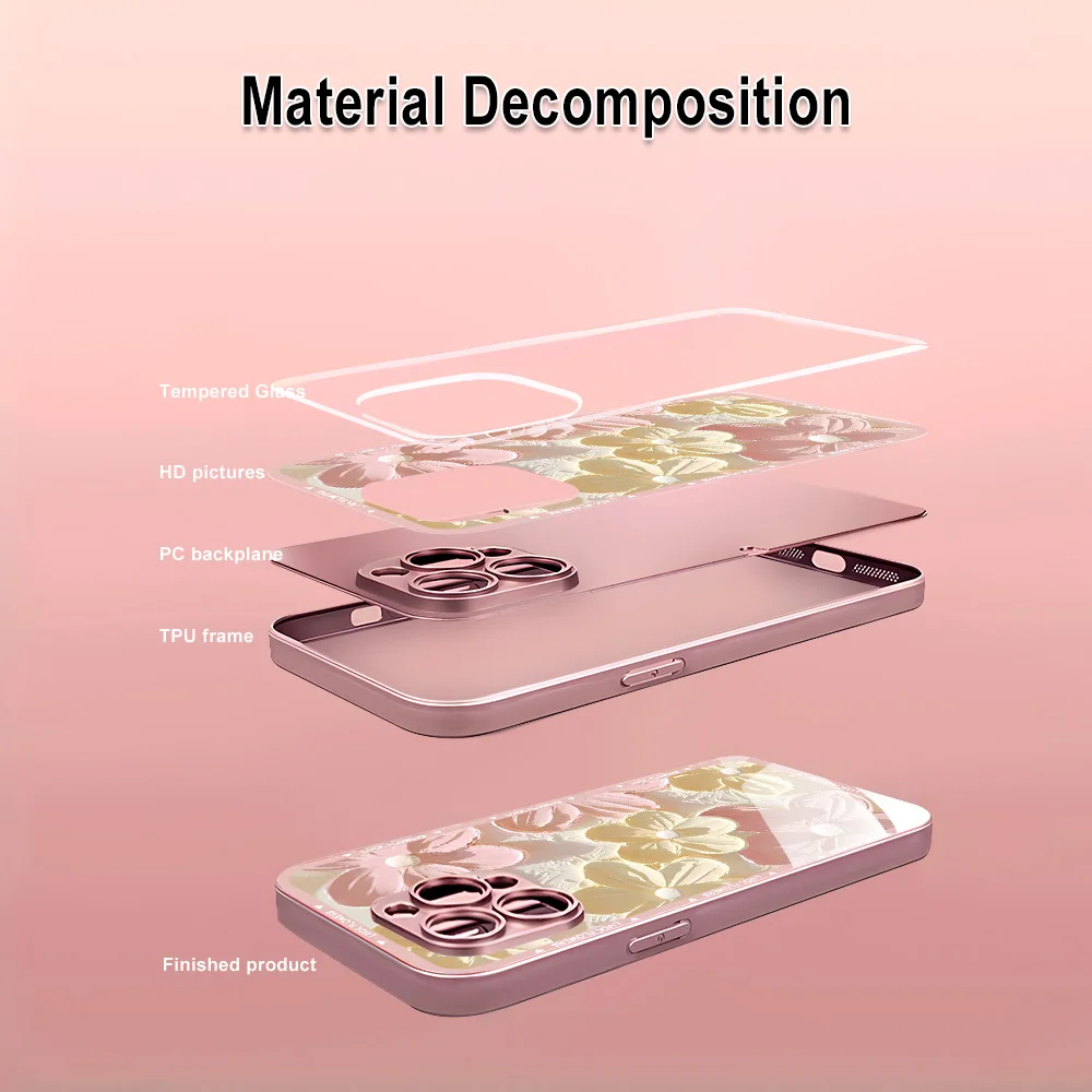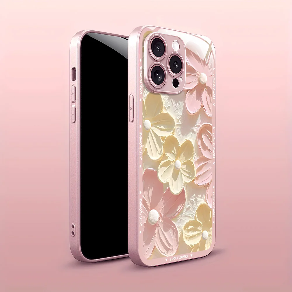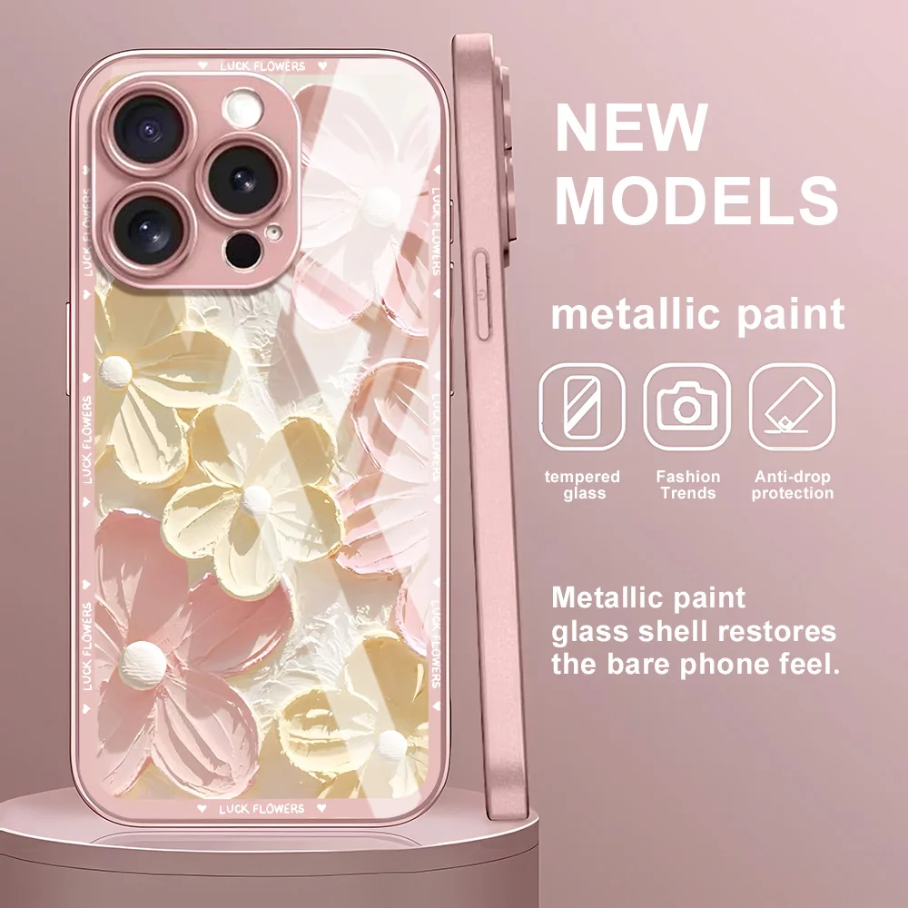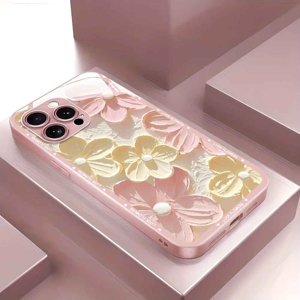 Funda de teléfono con flores y pintura al óleo para iPhone 16 13 17 15 11 12 14 Pro Max 17 Air 16E 8 7 Plus XR SE 2022 2020 cubierta de vidrio templado