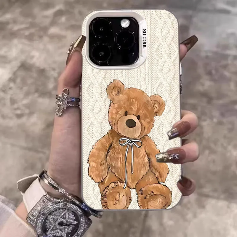 Funda de teléfono plateada con diseño cálido de oso tejido para Xiaomi 15T 14T 13T 12T Pro 11 Lite 5G 14 13 12 Poco X7 X6 X5 F6 F7 Pro F5