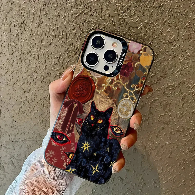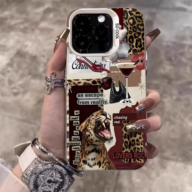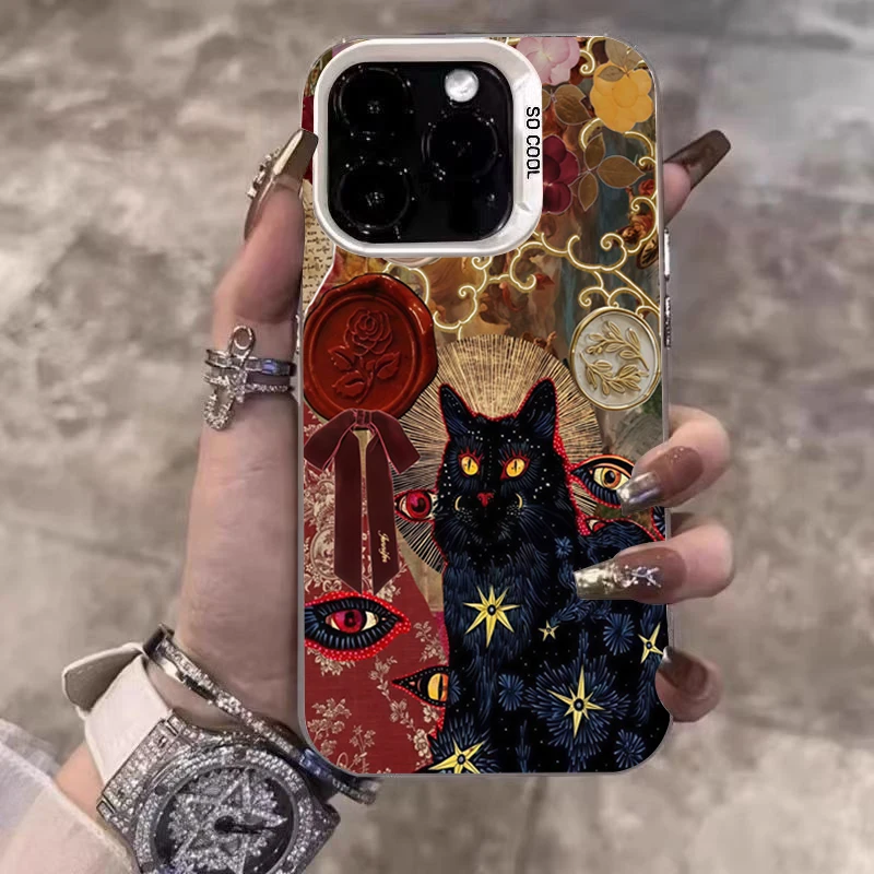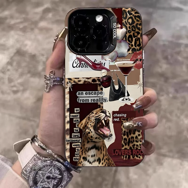 Funda de teléfono plateada electrochapada con estampado de leopardo y gato negro para Xiaomi Redmi Note 14 13 12 11 10 Pro Plus 12S 11S Redmi 15C 14C