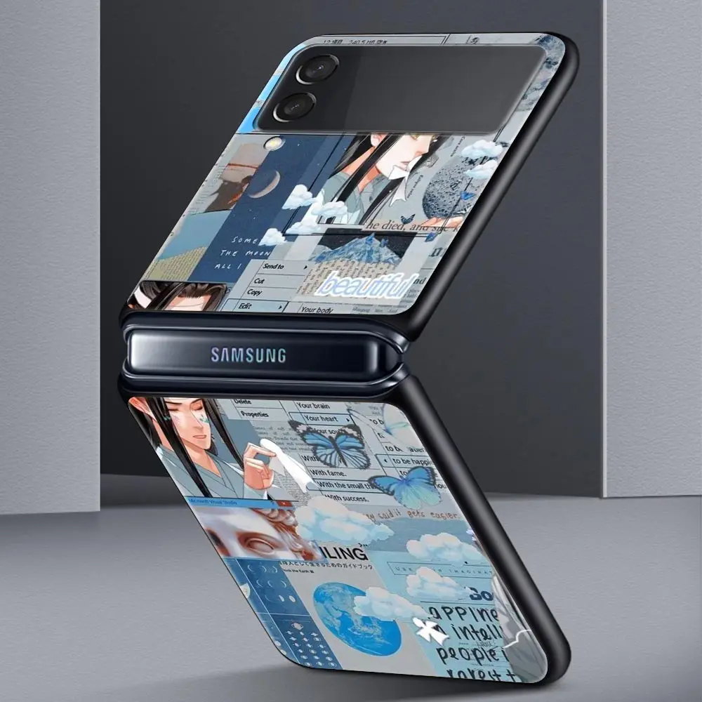 Comprar Funda de teléfono plegable para Samsung Galaxy Z Flip 3, 4, 5, MDZS, Anime Mo Dao Zu Shi, funda trasera de lujo para Samsung Z Flip3