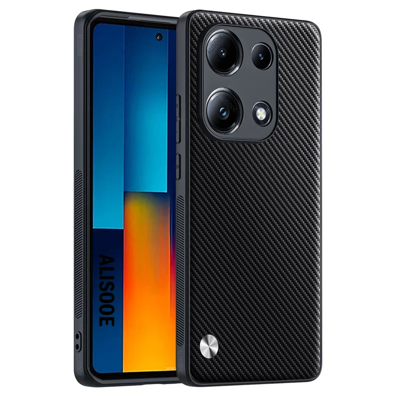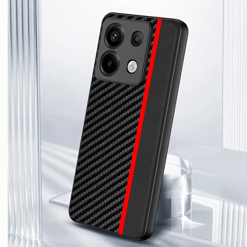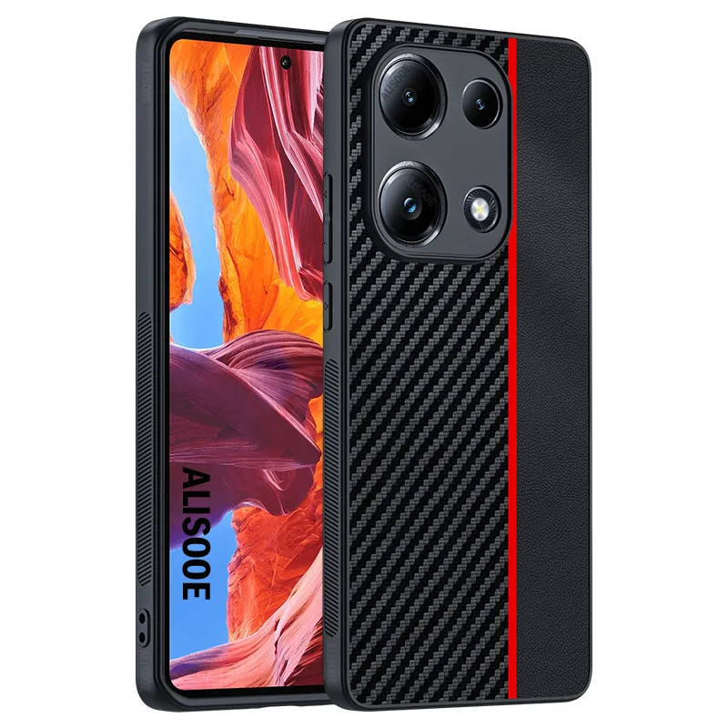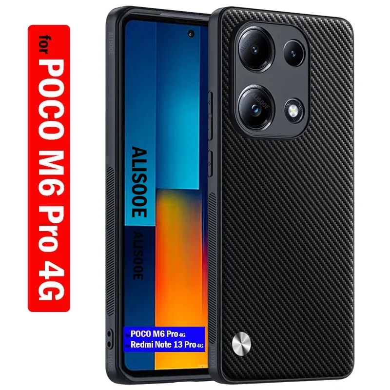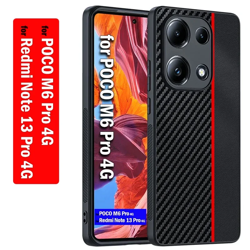 Comprar Funda para teléfono POCO M6 Pro 4G, cubierta protectora de cuero PU con textura de fibra de carbono para Redmi Note 13 Pro 4G