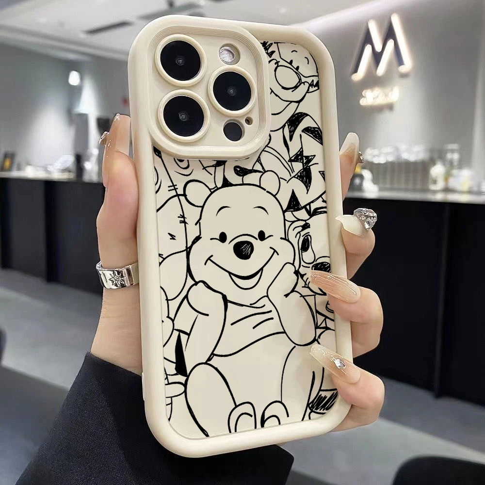 Funda de teléfono Pooh Bear Lines para Google Pixel 9 8 8A 7 7A Pro XL 5G TPU suave Funda a prueba de golpes