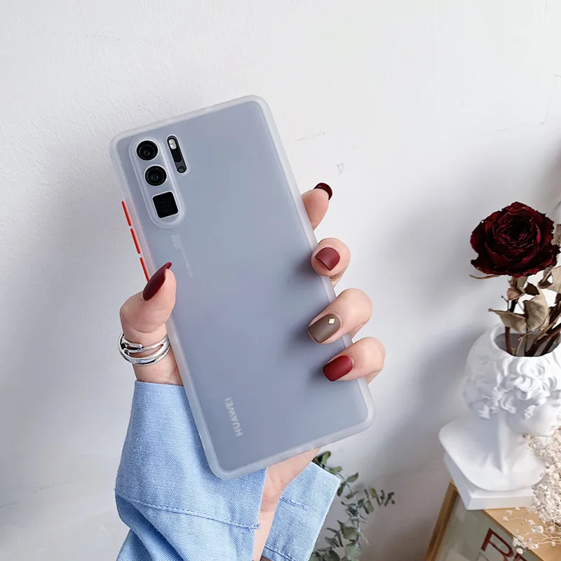 Funda de teléfono con protección para lente de cámara, carcasa trasera translúcida Mate a prueba de golpes para Huawei P20, P30, P40 Pro, Mate 20, Honor 20 Pro