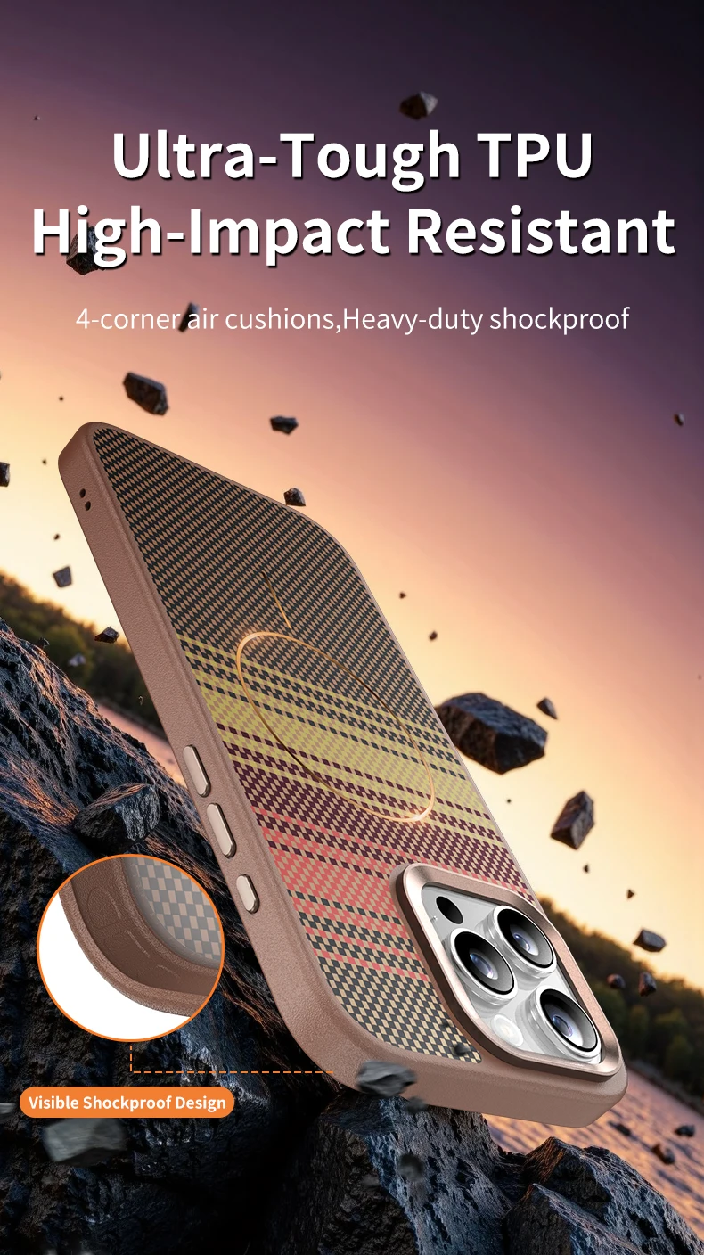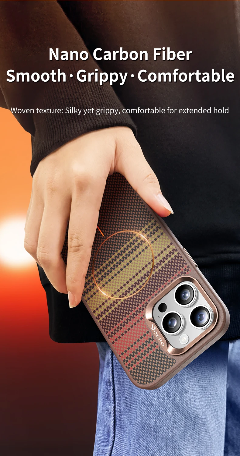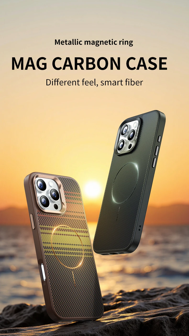 Funda de teléfono con protección de lente de Metal con textura de fibra de carbono Bio para iPhone 16 15 14 Pro Max MagSafe, funda de carga inalámbrica magnética