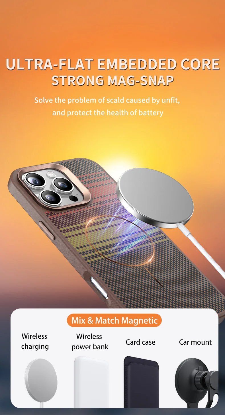 Funda de teléfono con protección de lente de Metal con textura de fibra de carbono biológica para iPhone 16 15 14 Pro Max MagSafe cubierta de carga inalámbrica magnética