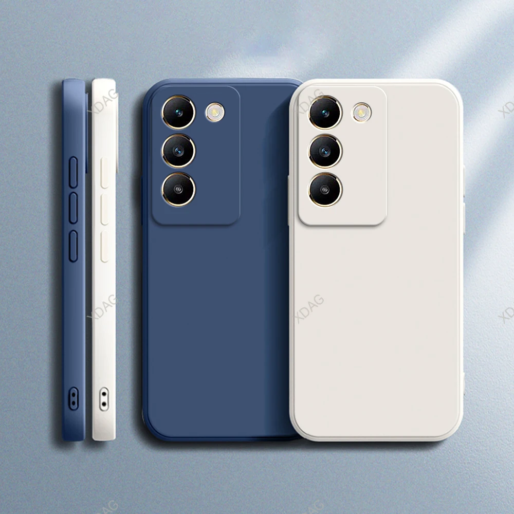 Comprar Funda de teléfono con protección de lente para VIVO V40 SE V40SE 5G, 6,67 ", silicona líquida suave y lisa, accesorios de cubierta trasera con borde recto Simple